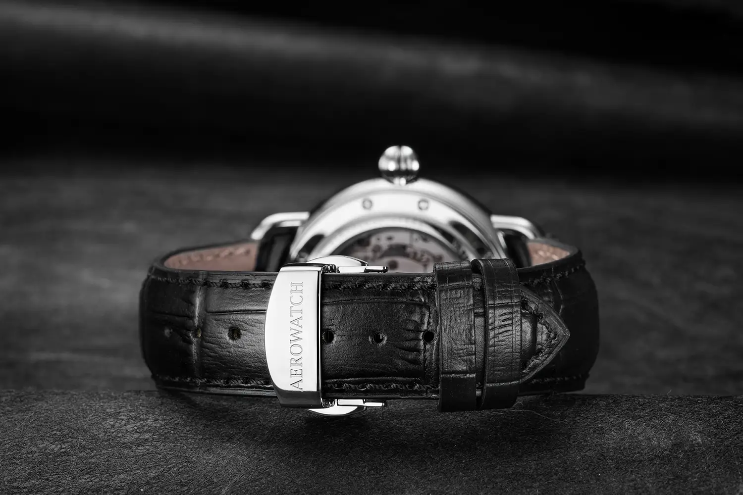 Aerowatch 1942 Regulator Limited Edition A 76983 AA04 je výjimečný příklad hodinářského umění, který spojuje klasickou funkci regulátoru se švýcarskou přesností. Limitovaná edice 100 kusů na celém světě vzdává hold tradici Haute Horlogerie – regulátorové hodiny sloužily více než dvě století jako etalon přesnosti v hodinářských dílnách. Dnes jsou sběratelskou raritou a Aerowatch ukazuje, že dokáže tomuto formátu vtisknout nový život.