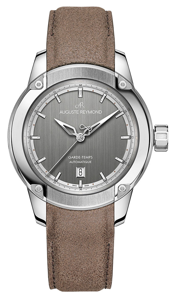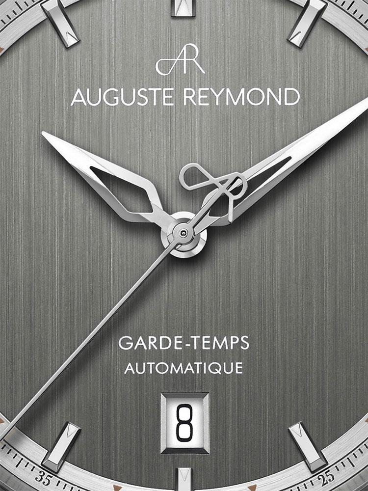 Kromě inovativního designu hraje důležitou roli standard dokončovacích detailů. Design prolamované krajky odkazuje na hodinová kolečka a historické měřicí příMachinee. Tento detail dodává vnějšímu designu automatických hodinek Auguste Reymond Garde-Temps Automatique mechanický nádech. Mezi složité funkce patří kartáčované lemy na korunových řezech a důlcích. Ciferník obsahuje logo značky ve středu a datumové okénko nad pozicí 6 hodin. Tvar indikací by měl připomínat šipky kompasu. Výrazným akcentem je v jejich případě Super-LumiNova® - luminiscenční látka. Protiváhu sekundové ručičky zatraktivňuje až prolamovaná verze loga značky. Díky specifičnosti svého designu a v závislosti na poloze sekundová ručička zobrazuje logo nebo symbol nekonečna. Tyto elegantní pánské hodinky z kolekce Unity jsou vybaveny automatickým mechanickým Machinekem s rezervou chodu 42 hodin , který se vyznačuje modrým oscilačním závažím potaženým PVD vrstvou.