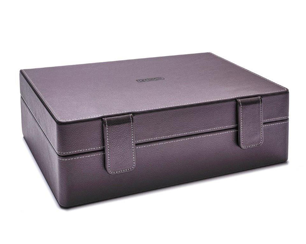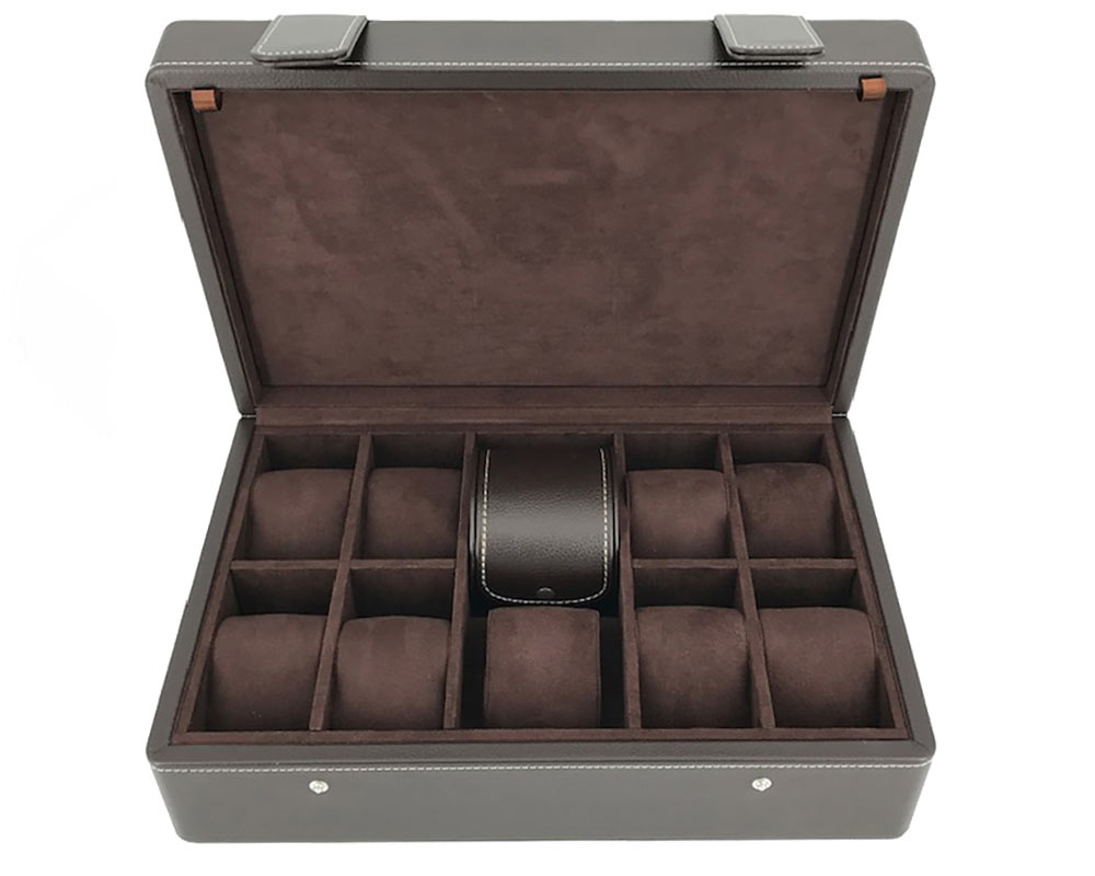 Vysoce kvalitní sběratelský box až na 10 hodinek. Leanschi WB10-CHOC obsahuje oválné cestovní pouzdro na 1 hodinky. Ve víku je integrována další přihrádka, kam můžete uložit řemínky nebo náramek na hodinky. Ekologický MDF rám potažený čokoládově hnědou syntetickou kůží. Logo značky je vyraženo uprostřed vnější strany víka.