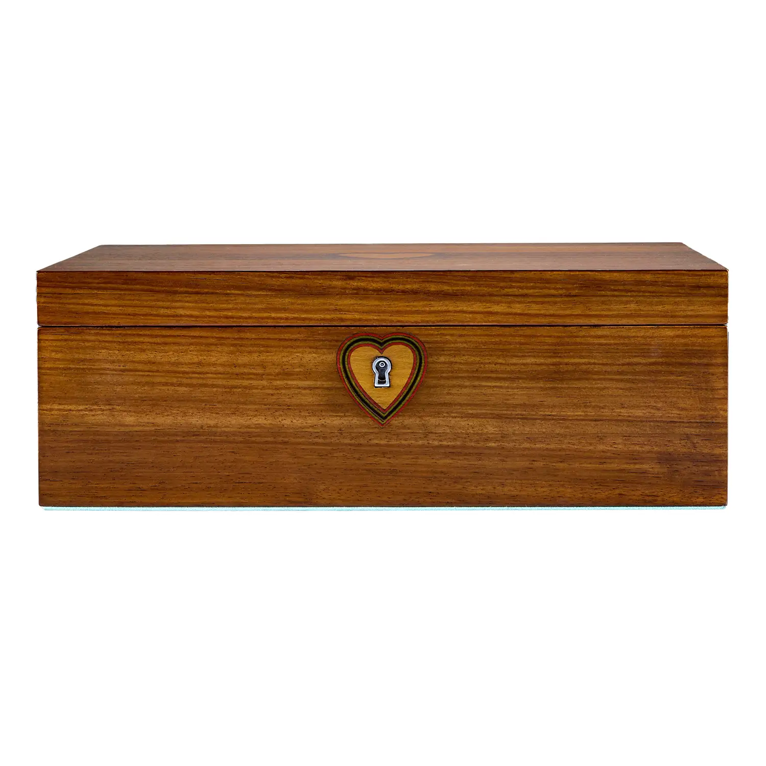 Interiér boxu je inspirován scénografií baletu „Šípková Růženka“ – vyšívaný zámek obklopený růžovým lesem, navržený Fionou Howard, rámuje zrcátko ve tvaru srdce s vlnitým okrajem. Přihrádky na šperky jsou vystlány měkkou tkaninou Ultrasuede s technologií LusterLoc™, která chrání šperky před matněním až po dobu 35 let.