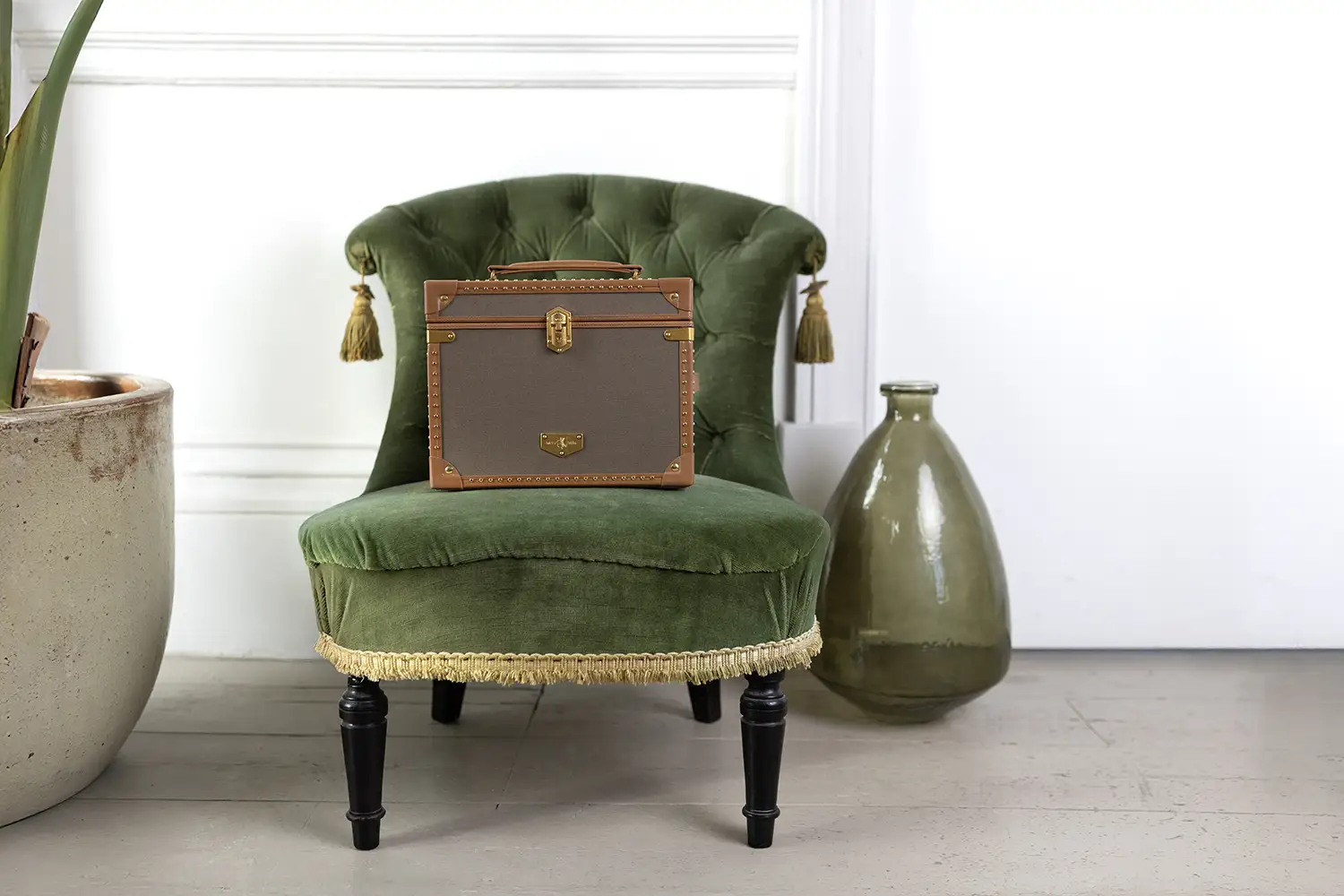 WOLF Ida 190041 je luxusní pudlo na šperky ve stylu cestovního kufru, které se vyznačuje výjimečným provedením v odstínu zelené khaki. Inspirací pro jeho návrh byly cesty Idy po Skandinávii a klasické cestovní kufry – odolné, elegantní a mimořádně praktické. Vnější povrch z recyklovaného plátna se zde spojuje s detaily z přírodní lícové kůže a mosaznými prvky, které celku dodávají ušlechtilý, vintage charakter.