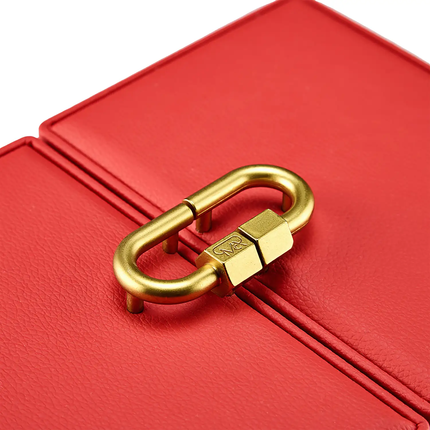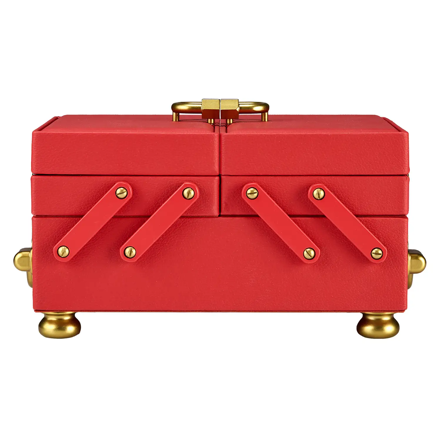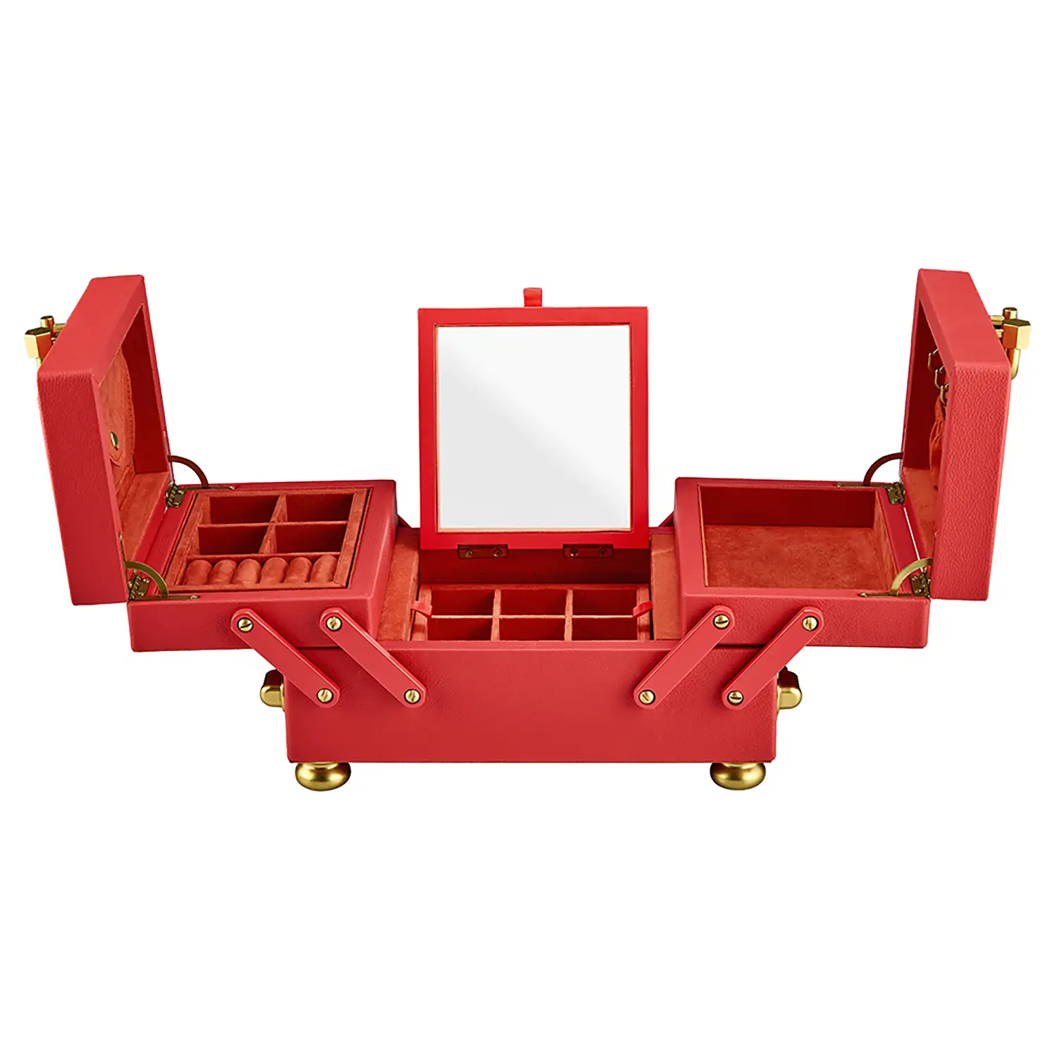 WOLF Marla Aaron Baby Everything Box 730100 je luxusní šperkovnice vytvořená v duchu moderní reinterpretace klasického krejčovského košíku. Výsledkem spolupráce značky WOLF a designérky Marly Aaron je produkt s mimořádnou estetikou a funkčností – nyní dostupný v energetické červené barvě, vyrobený z veganské kůže.