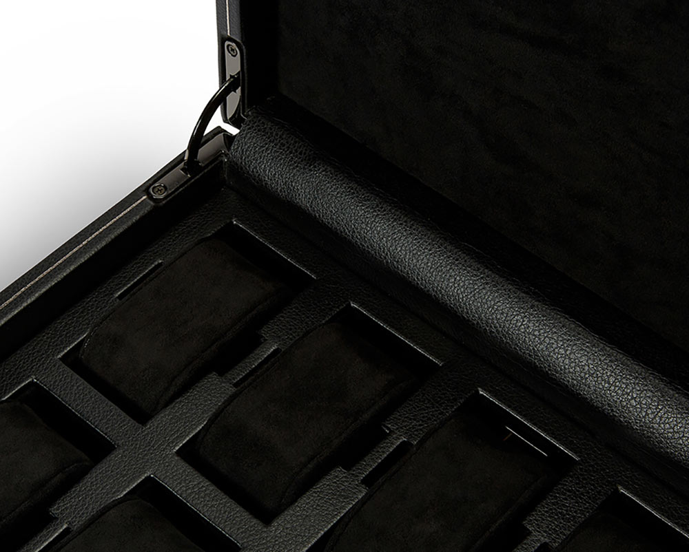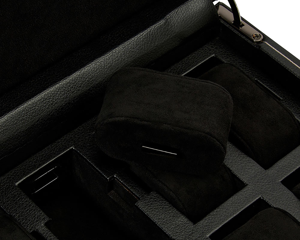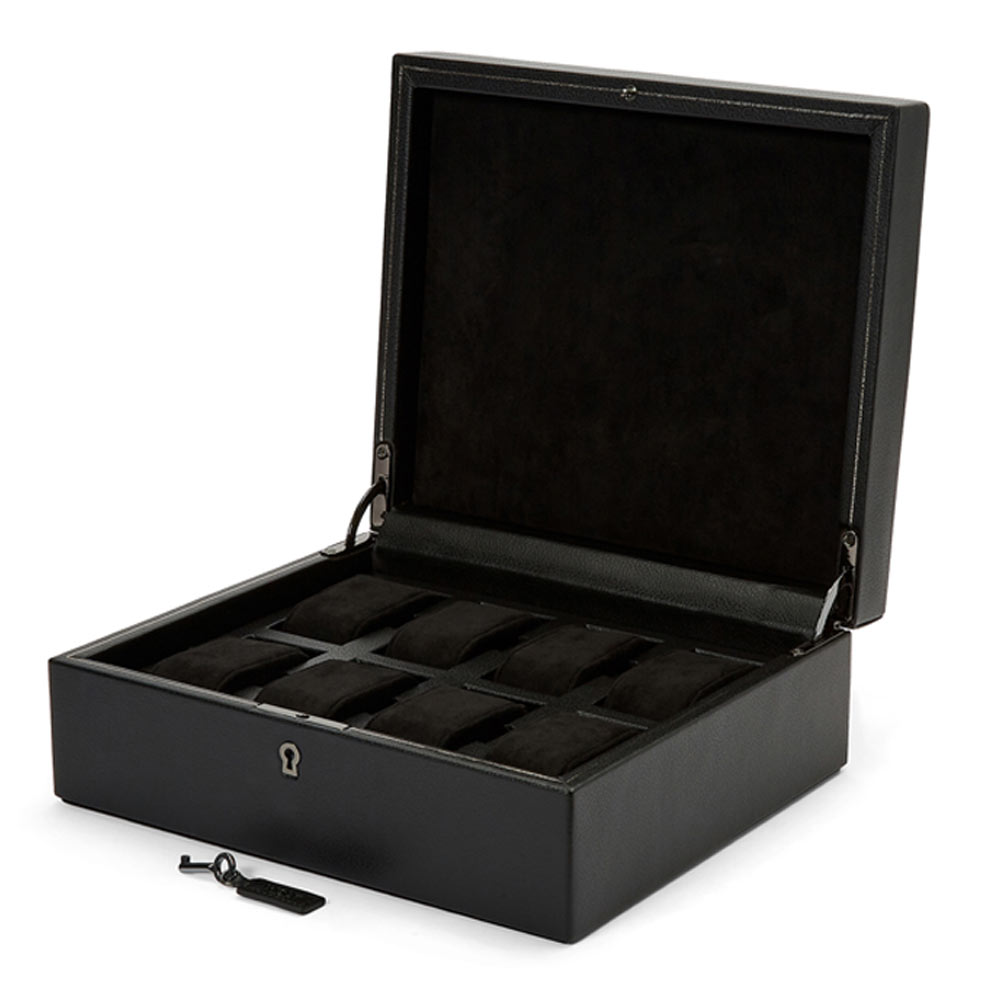 Ručně vyráběný britský závodní box WOLF 792602 . Vysoce kvalitní jemné detaily, jako jsou ručně ražené černé linky na zrnité kůži vhodné pro vegany. Černé polstrované panty, stylový klíč a ochrana zámku dodávají třídu. Krabička na hodinky WOLF je perfektní dárek. Elegantní forma v precizním provedení.