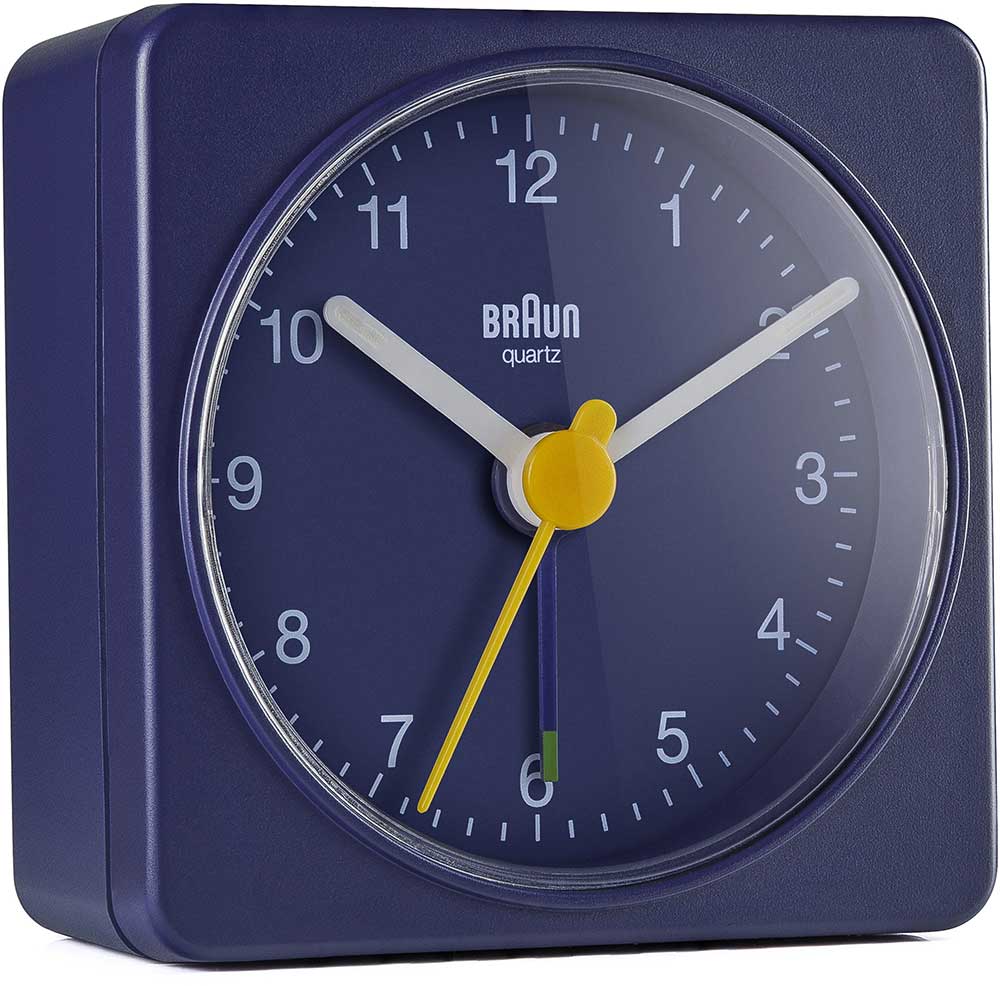 Klasický modrý cestovní budík Braun BC02BL se vyznačuje snadno čitelným číselníkem s ikonickou žlutou sekundovou ručičkou, která se stala synonymem pro oceňovaný design Braun. Jednoduchý design a snadné použití z něj činí jedinečný budík Braun.