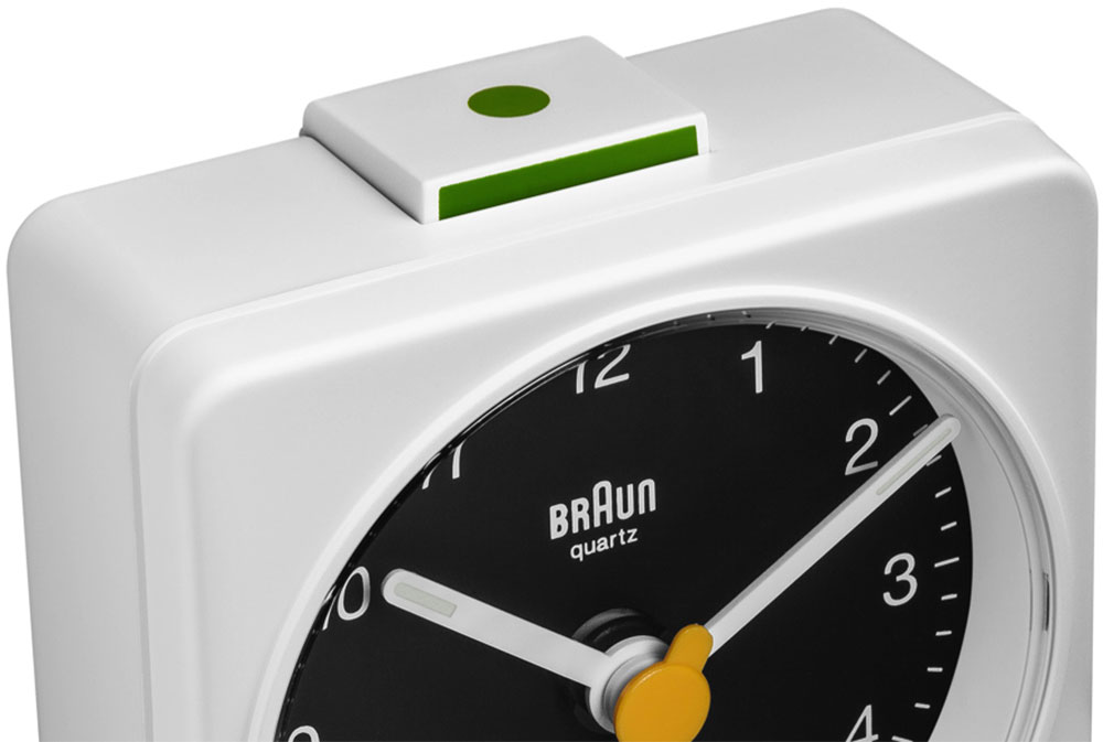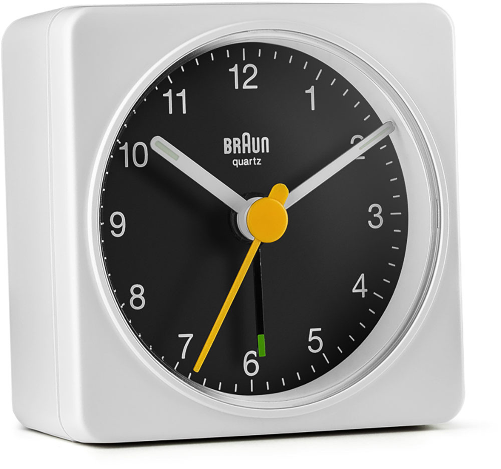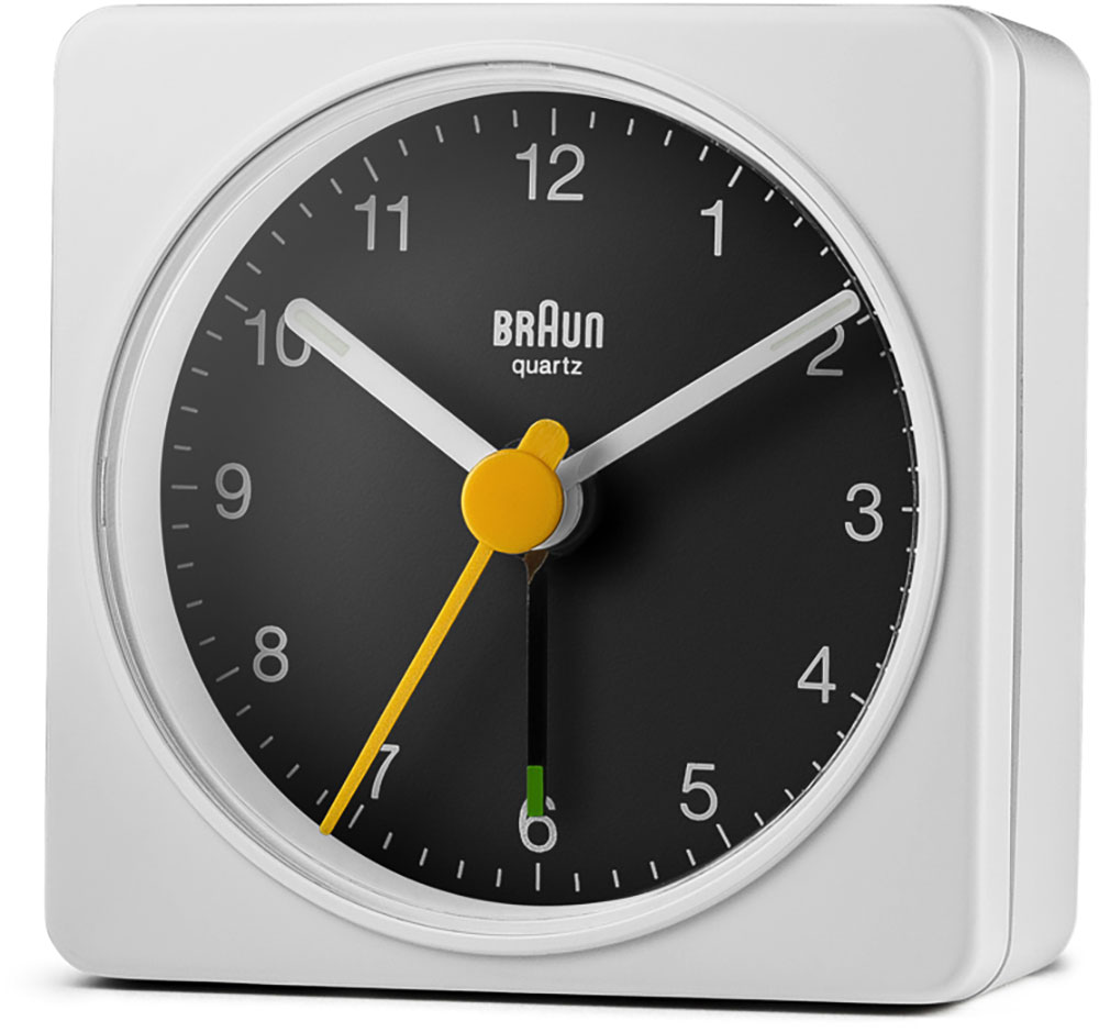 Klasický bílý cestovní budík Braun BC02XWB má snadno čitelný číselník s ikonickou žlutou sekundovou ručičkou, která se stala synonymem pro oceňovaný design Braun. Jednoduchý design a snadné použití z něj dělají jedinečný budík Braun.