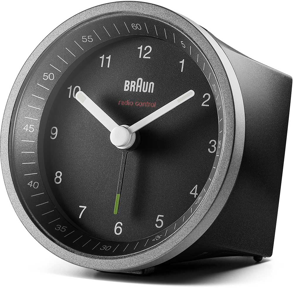 Klasický kulatý budík Braun Radio Controlled BC07SB-DCF s minimalistickým designem a velmi čitelným černým ciferníkem. Vybaveno německým bateriovým quartz strojkem s alarmem v podobě ručičky. Hodiny jsou řízeny rádiovými vlnami.