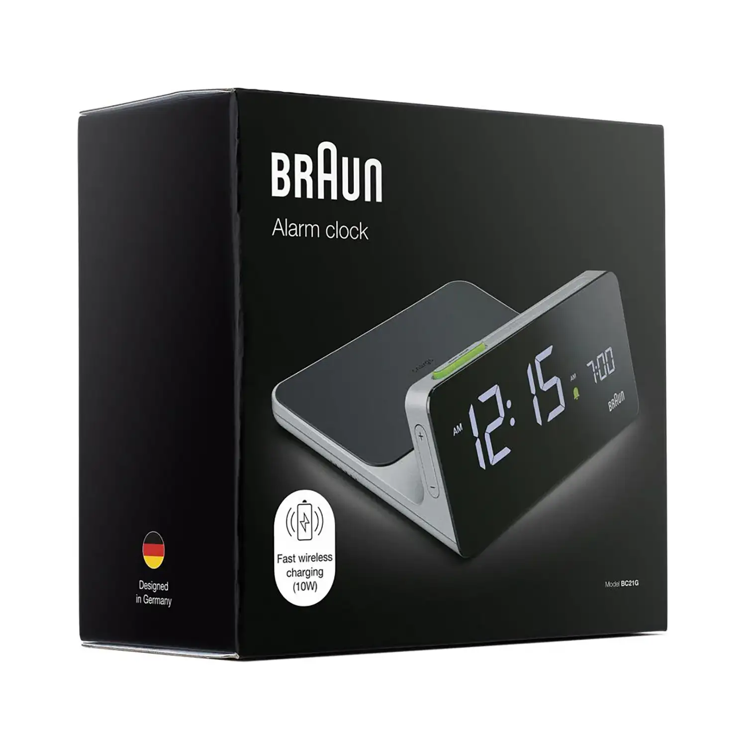 Budík Braun BC21GEU jsou digitální hodiny s bezdrátovým nabíjením, navržené s ohledem na jednoduchost a funkčnost. Jeho design odkazuje na klasický model DN 40, který vytvořili Dieter Rams a Dietrich Lubs v roce 1976. BC21 si zachovává tradiční vzhled Braun a zároveň nabízí moderní funkce.