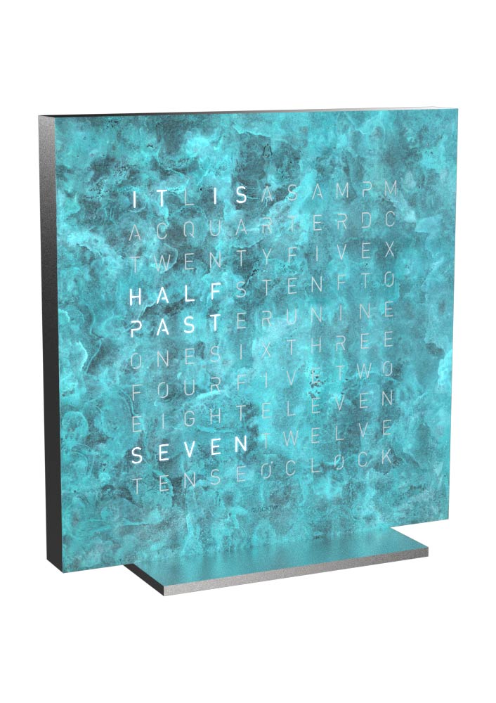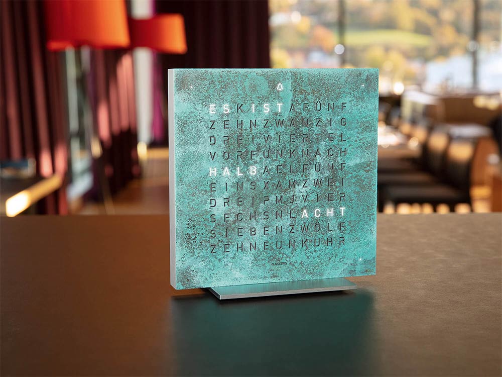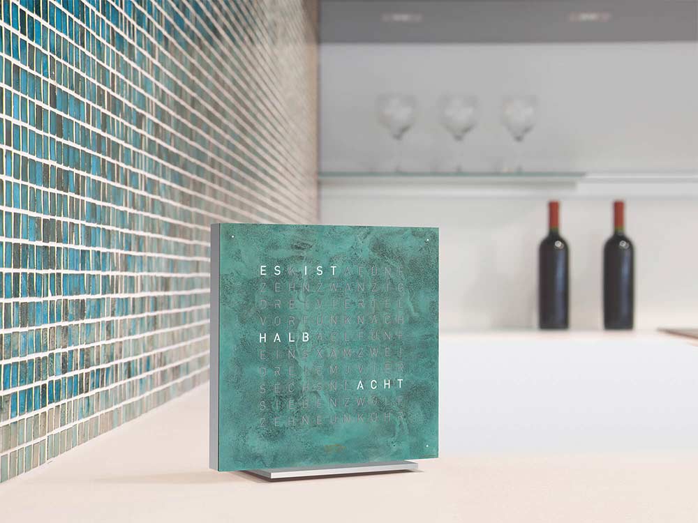 Design a kvalita zpracování jsou na profesionální úrovni a dokonale odrážejí ducha současných trendů. Ať už na pracovním stole, v obývacím pokoji nebo ložnici, kompaktní Qlocktwo Earth bude dokonalou dekorací a stylovým doplňkem každého interiéru a jeho výměnný přední panel otevírá neomezené možnosti přizpůsobení eleganci okolí. Výměna matrice je jednoduchá a nevyžaduje žádné nástroje, protože je připevněna magnety.