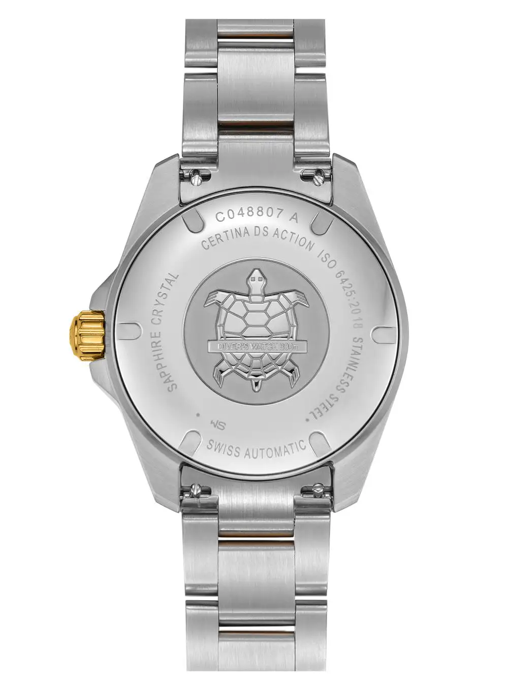 Navržen pro osoby, které neuznávají žádné hranice ani pod vodou, ani vysoko nad ní. Automatické hodinky Certina DS Action Diver Powermatic 80 C048.807.22.041.00 jsou nástrojem vytvořeným pro sportovce, průzkumníky a nadšence extrémních výzev. Jsou to hodinky s patentovaným systémem (DS), který nejen splňuje přísnou normu ISO 6425 pro potápěčské modely, ale dokonce ji překračuje díky pevnosti provedení a ergonomii. Ve světě, kde o bezpečnosti rozhoduje přesnost, se tento model stává partnerem hodným důvěry. Prezentovaný model je nabízen ve stříbrno-zlatém barevném provedení s povlakem PVD.