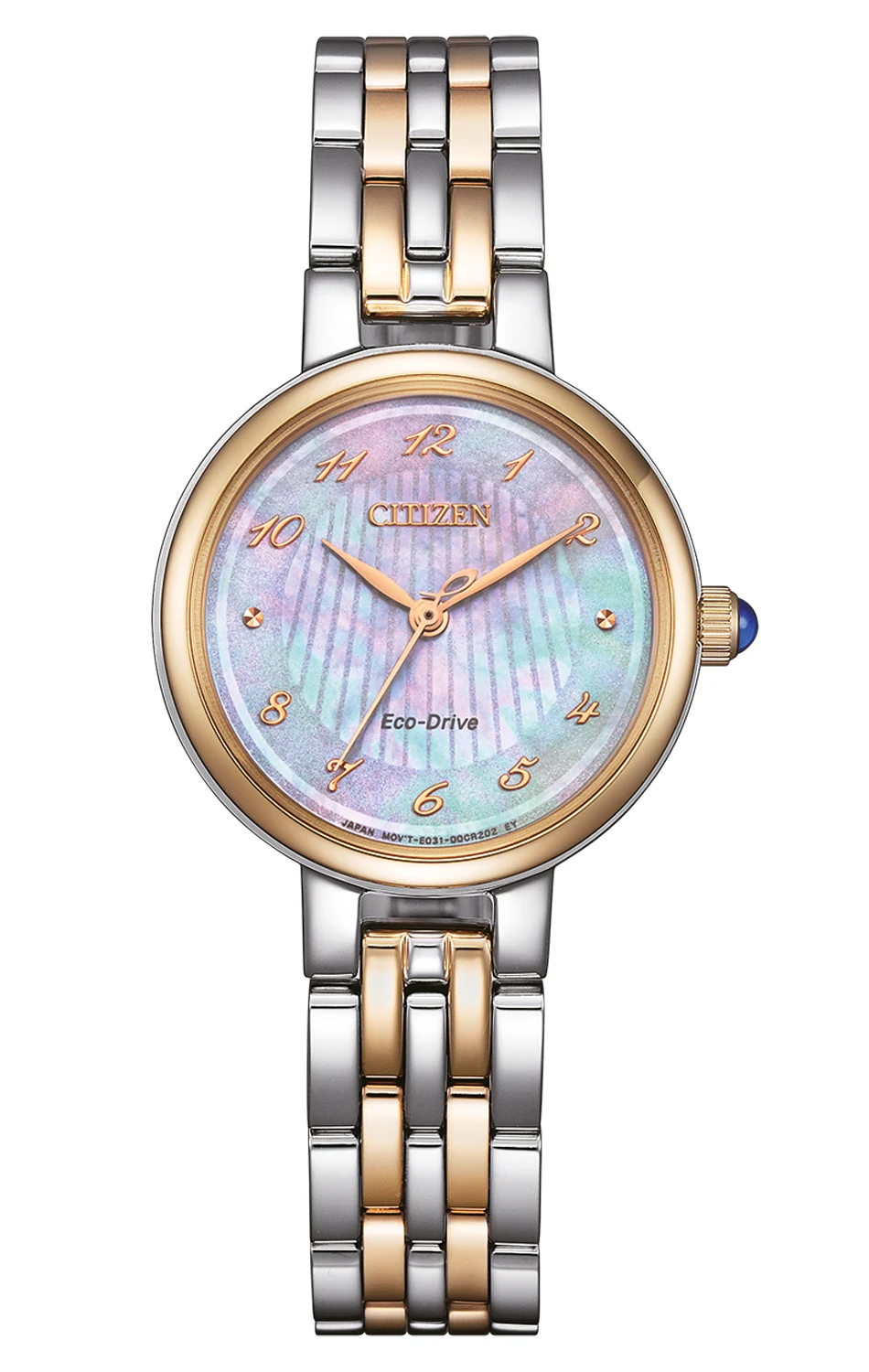 Citizen Lady EM0996-84Y je dámské hodinky, které okouzlují jemnou elegancí a výjimečným designem. Štíhlé pouzdro o průměru 27,7 mm a výšce 7,73 mm je vyrobeno z ušlechtilé oceli a jeho prvky v barvě růžového zlata dodávají celku luxusní charakter. Dvoubarezný ocelový náramek s dvojitým tlačítkovým zapínáním zajišťuje pohodlí a bezpečnost při nošení.