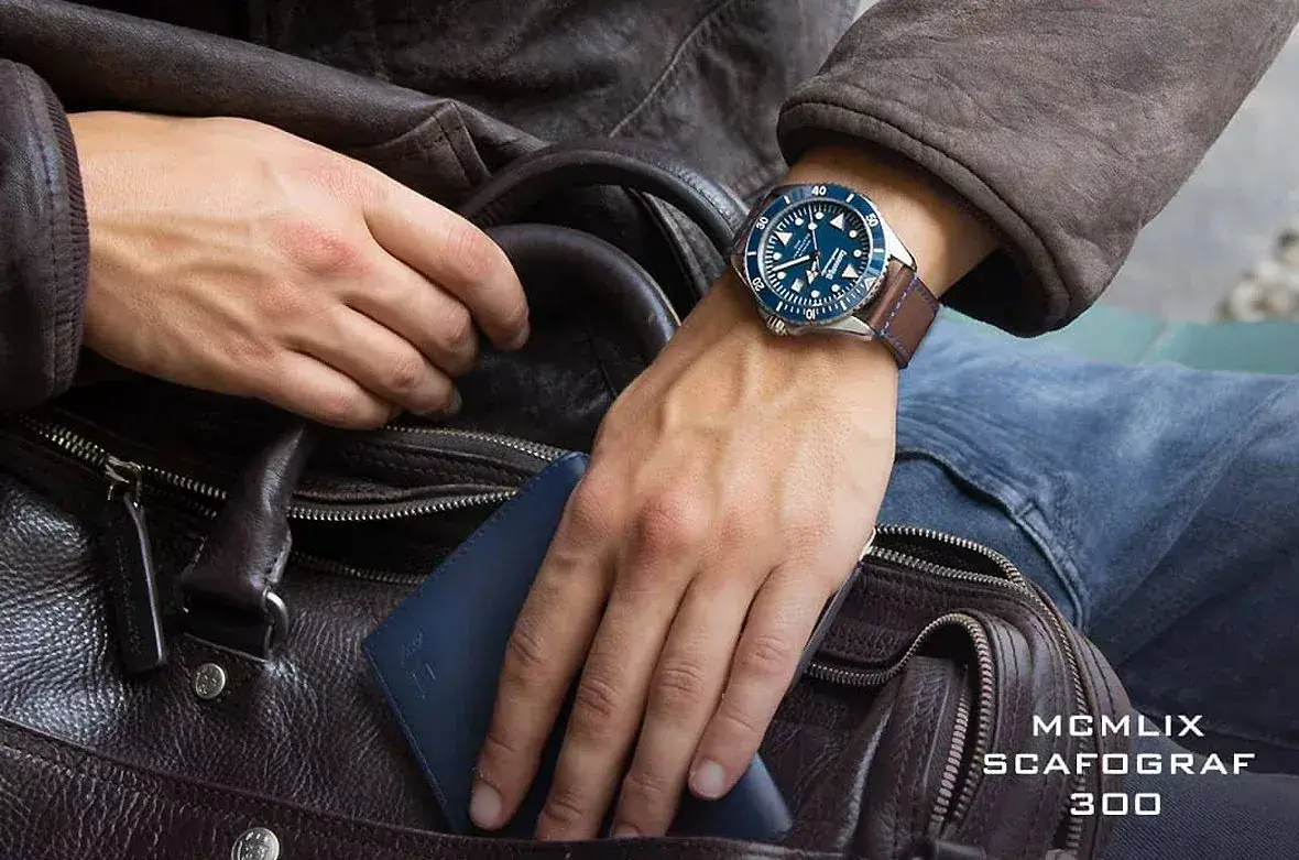 Modrý ciferník není nijak přeplněný zbytečnými prvky ukazatelů. Na třetí hodině je umístěno klasicky orámované datumové okénko. Kromě loga je na ciferníku nápis „MCMLIX“, který označuje rok vzniku prvních hodinek z kolekce Scafograf. Celkový vzhled působí vyváženě a velmi esteticky. Samozřejmostí u potápěčských hodinek je vysoká čitelnost, která zde má nejvyšší prioritu.