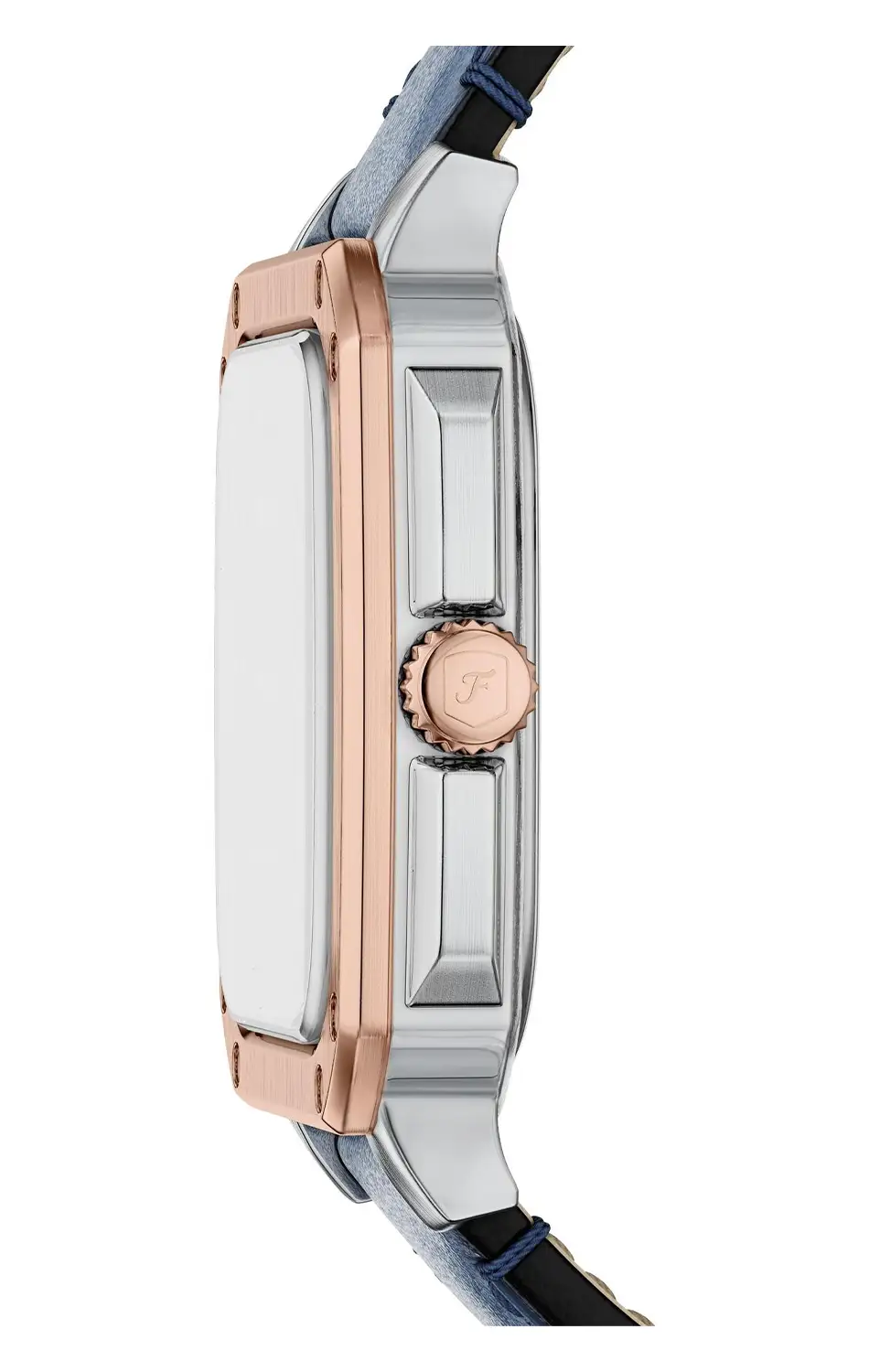Pánské hodinky Fossil Crosby FS6149 jsou moderní interpretací klasické formy, navrženou s ohledem na muže, kteří dbají na detail a jednotný styl. Bicolor pouzdro o průměru 42 mm působí výrazně, ale zachovává elegantní proporce, díky čemuž hodinky dobře sedí na zápěstí. Modrý ciferník s římskými indexy dodává celku charakter a ocelové pouzdro podtrhuje robustnost a nadčasový vzhled modelu.