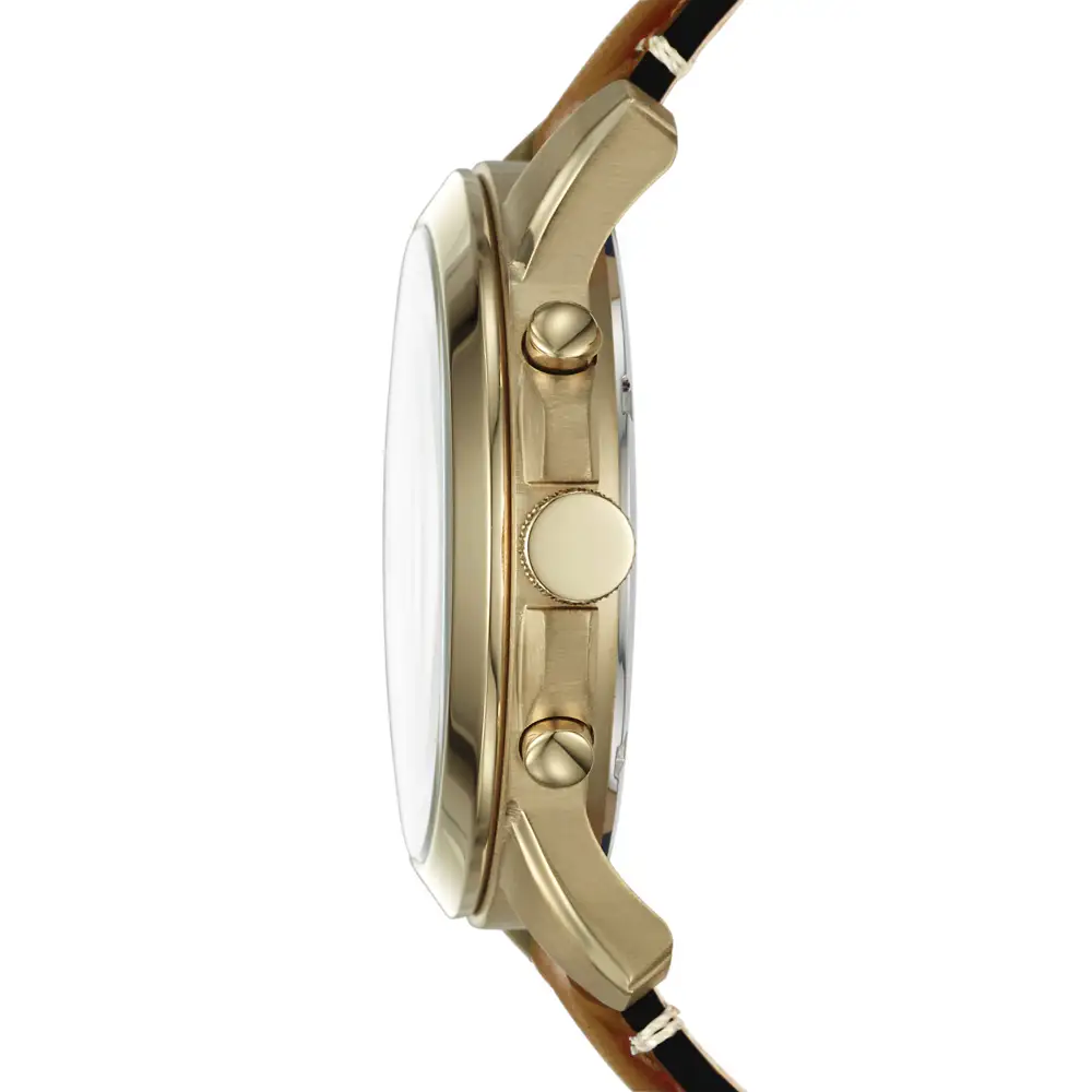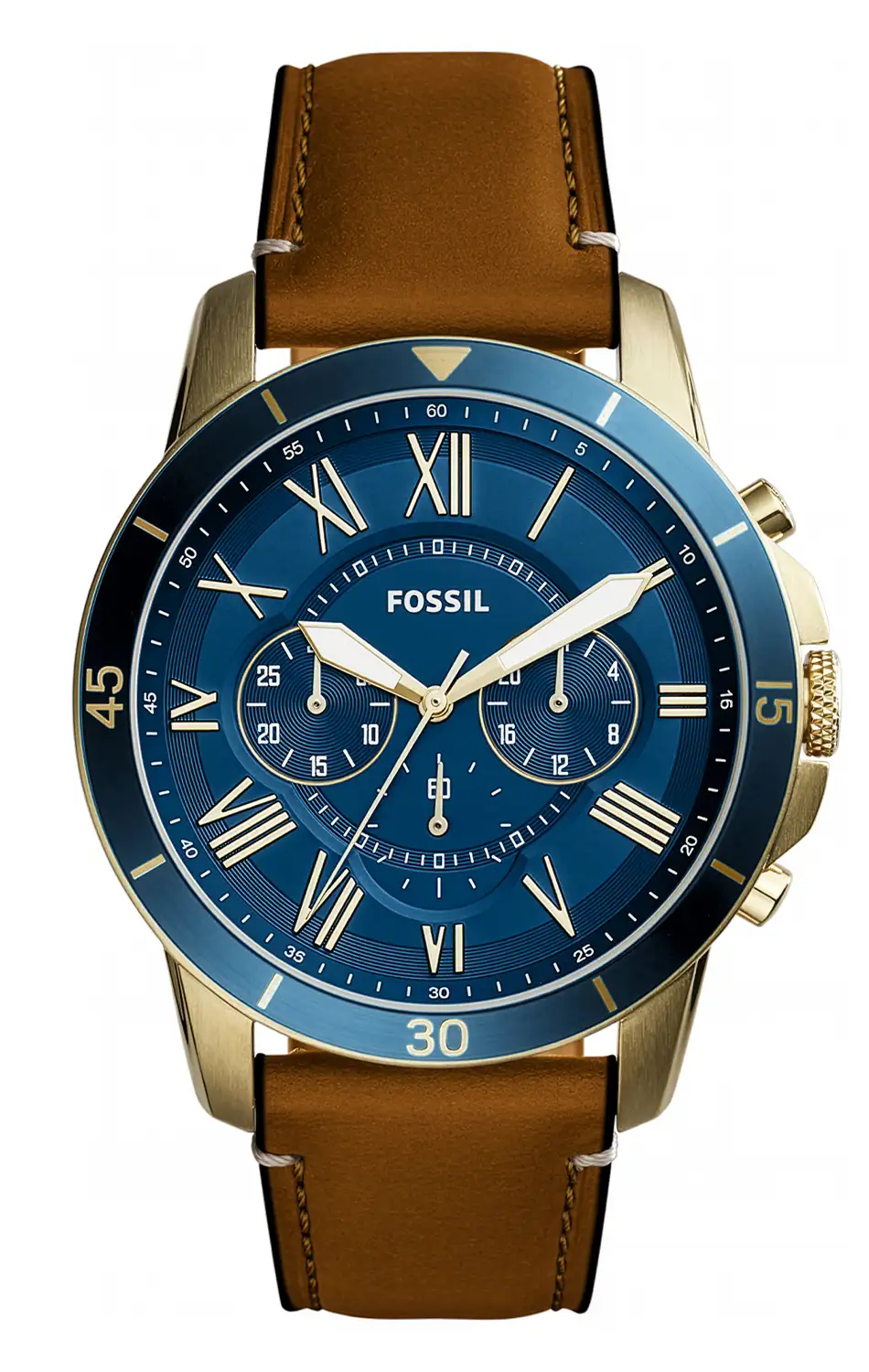 Pozlacené pánské hodinky Fossil Grant Chronograph FS5268 jsou sportovně elegantním modelem, který důsledně rozvíjí estetiku typickou pro tuto řadu a kombinuje klasické inspirace s výrazně mužským, rozhodným stylem. Pouzdro o průměru 44 mm zajišťuje výraznou přítomnost na zápěstí a spojení zlatého barevného provedení s modrým ciferníkem dodává celku elegantní, a zároveň dynamický vzhled. Kožený řemínek v teplém hnědém odstínu narušuje kovové akcenty a podtrhuje klasičtější, hodinářský charakter modelu.
