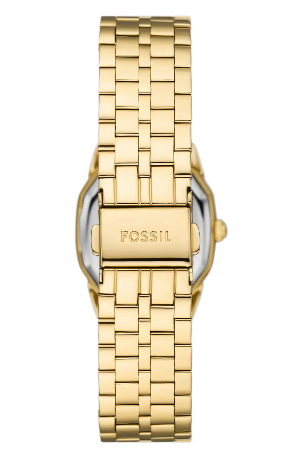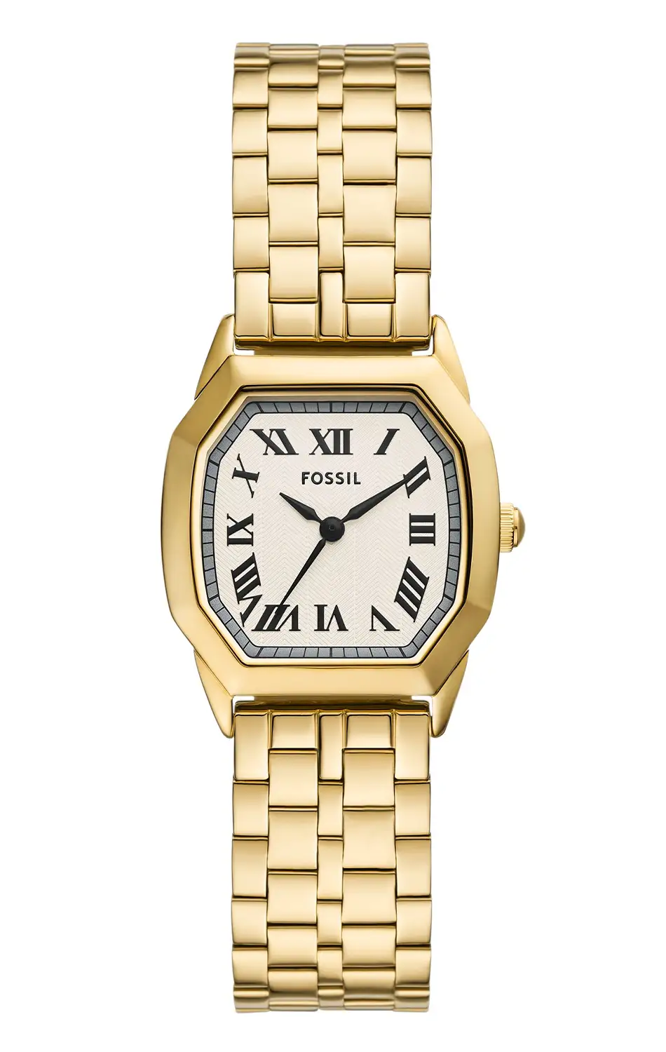 Čtvercové dámské hodinky Fossil Harlow ES5361 jsou bižuterním časoměřičem pro ženy, které oceňují výrazné doplňky a moderní formu. Čtvercové pouzdro o průměru 27 mm dodává modelu elegantní i módní charakter a zlaté barevné provedení podtrhuje jeho luxusní vzhled. Béžový ciferník s jemnou strukturou a římskými indexy vytváří harmonický kontrast, díky čemuž hodinky působí mimořádně stylově a přitahují pozornost na zápěstí.