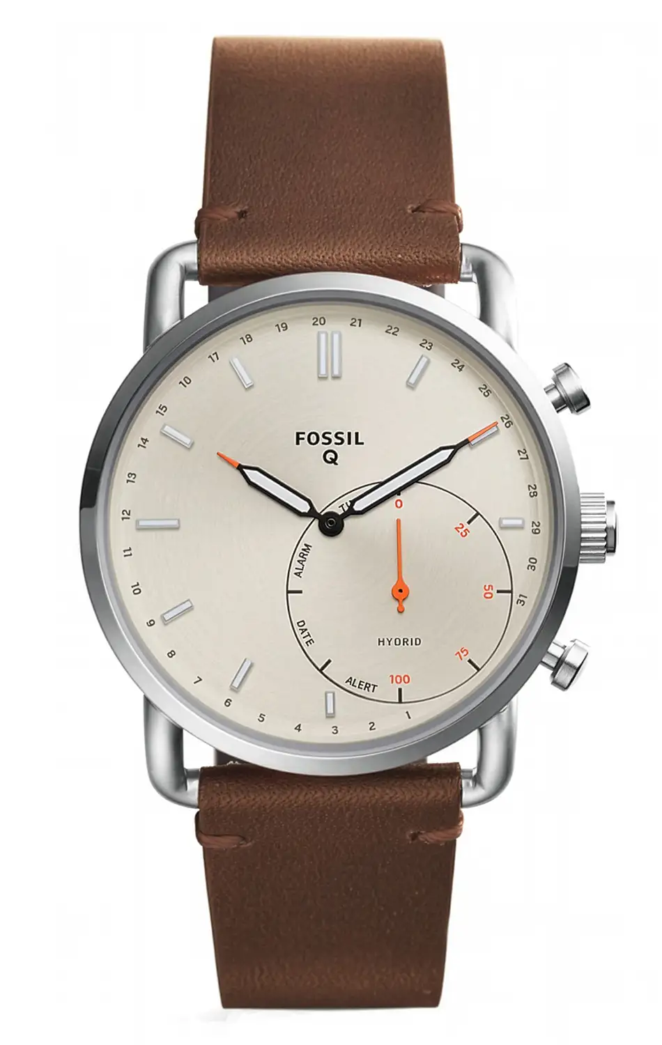 Pánské hodinky Fossil Smartwatch Q Commuter FTW1150 jsou hybridní smartwatch, které spojují klasický analogový design s moderními chytrými funkcemi a byly navrženy pro muže, kteří chtějí zůstat styloví a zároveň propojeni s digitálním světem. Pouzdro o průměru 42 mm v ocelovém provedení s hnědým koženým řemínkem vytváří elegantní, univerzální vzhled, který se hodí jak ke casualovým, tak i k formálnějším outfitům. Ciferník zůstává tradiční, ale díky použití hybridní technologie nabízí mnohem více než běžné hodinky.