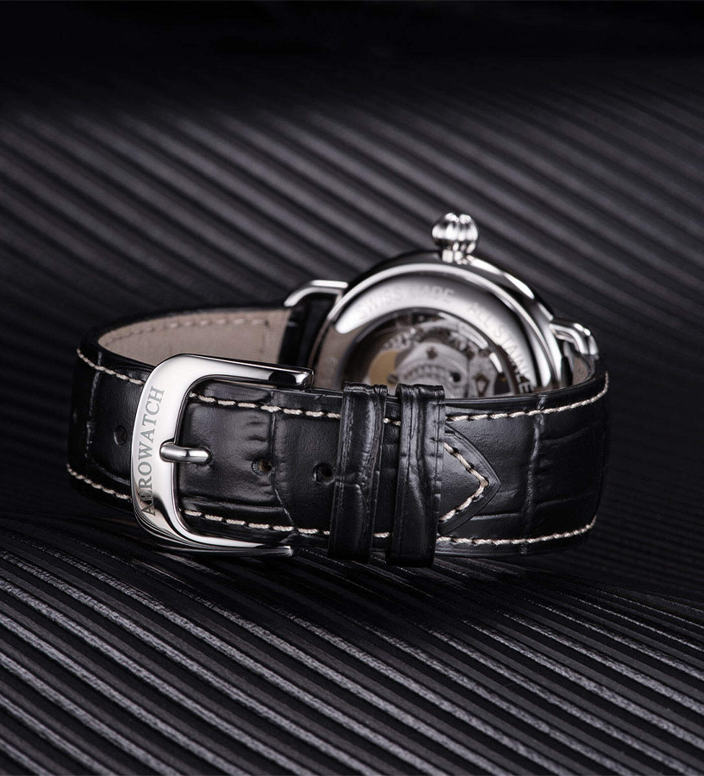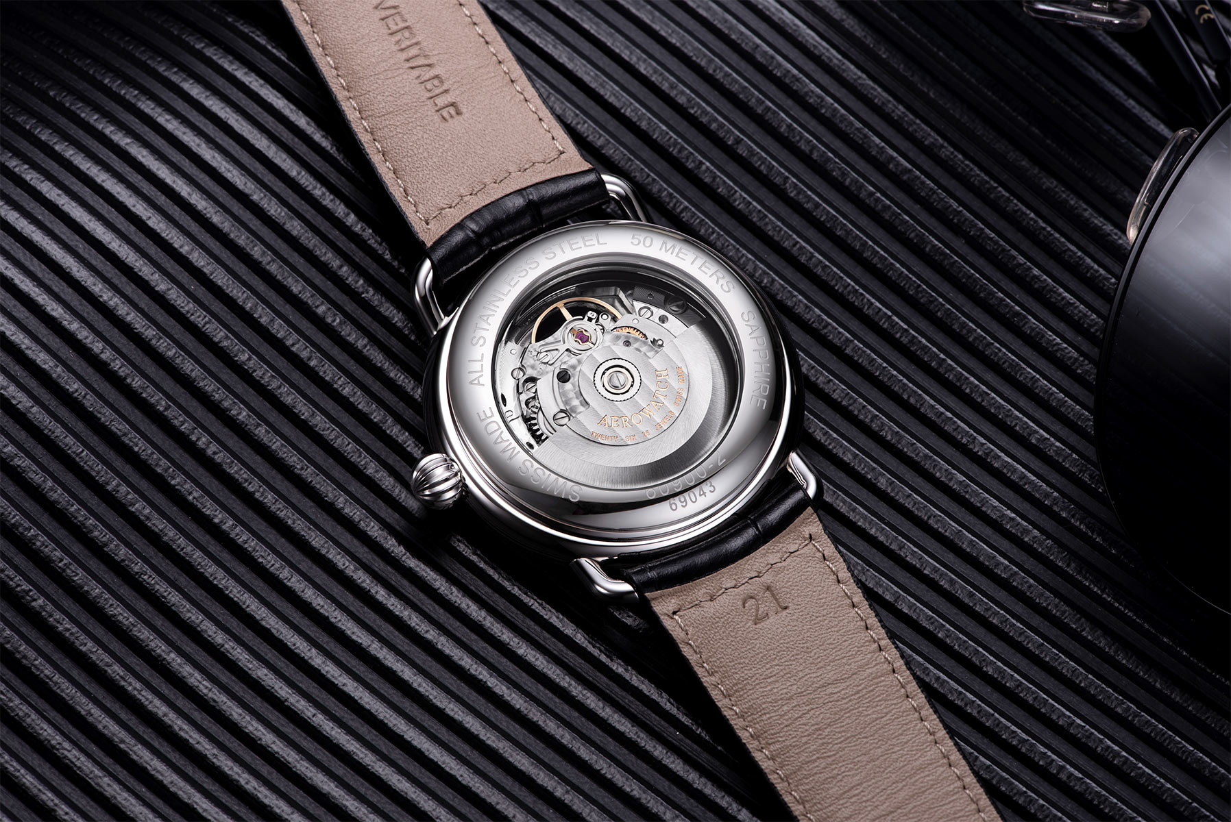 Aerowatch 1942 Automatic jsou perfektním společníkem nejen v kombinaci s oblekem, ale i pro každodenní použití. Darováno jako dárek, zaujme perfektně provedenými detaily a proskleným safírovým zadním pouzdrem s možností pozorování práce mechanismu. Vždyť kdo by skrýval malé, ale zároveň velké umělecké dílo hodinářů AEROWATCH .