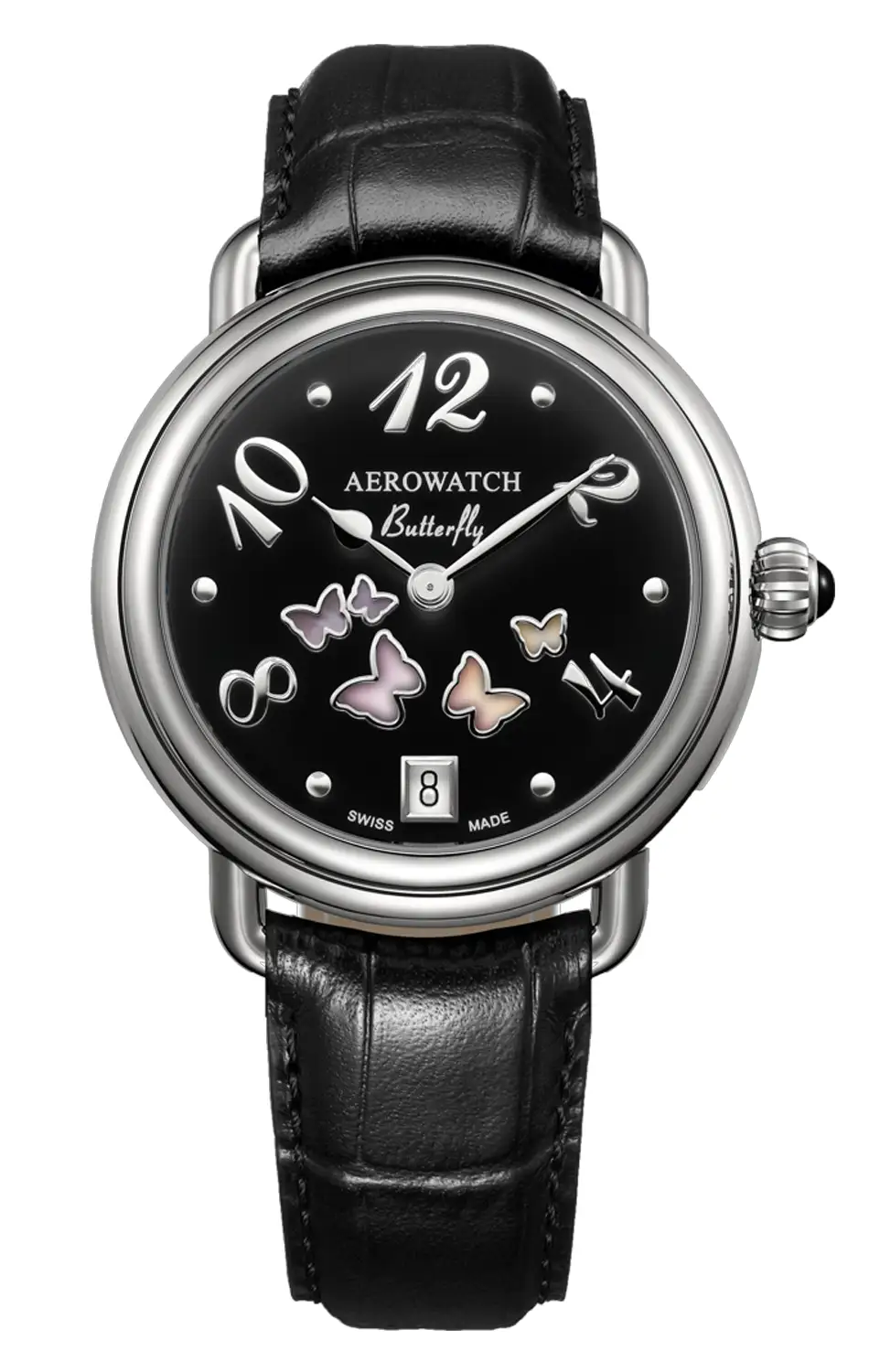 Aerowatch 1942 Butterfly A 44960 AA03 jsou dámské hodinky, které upoutají pozornost nejen svým vzhledem, ale také náladou, kterou s sebou nesou. Černý ciferník zdobený motivem barevných motýlů, měnících odstín v závislosti na úhlu dopadu světla, jim dodává lehkost a poetiku, která krásně kontrastuje s elegantním charakterem celku.
