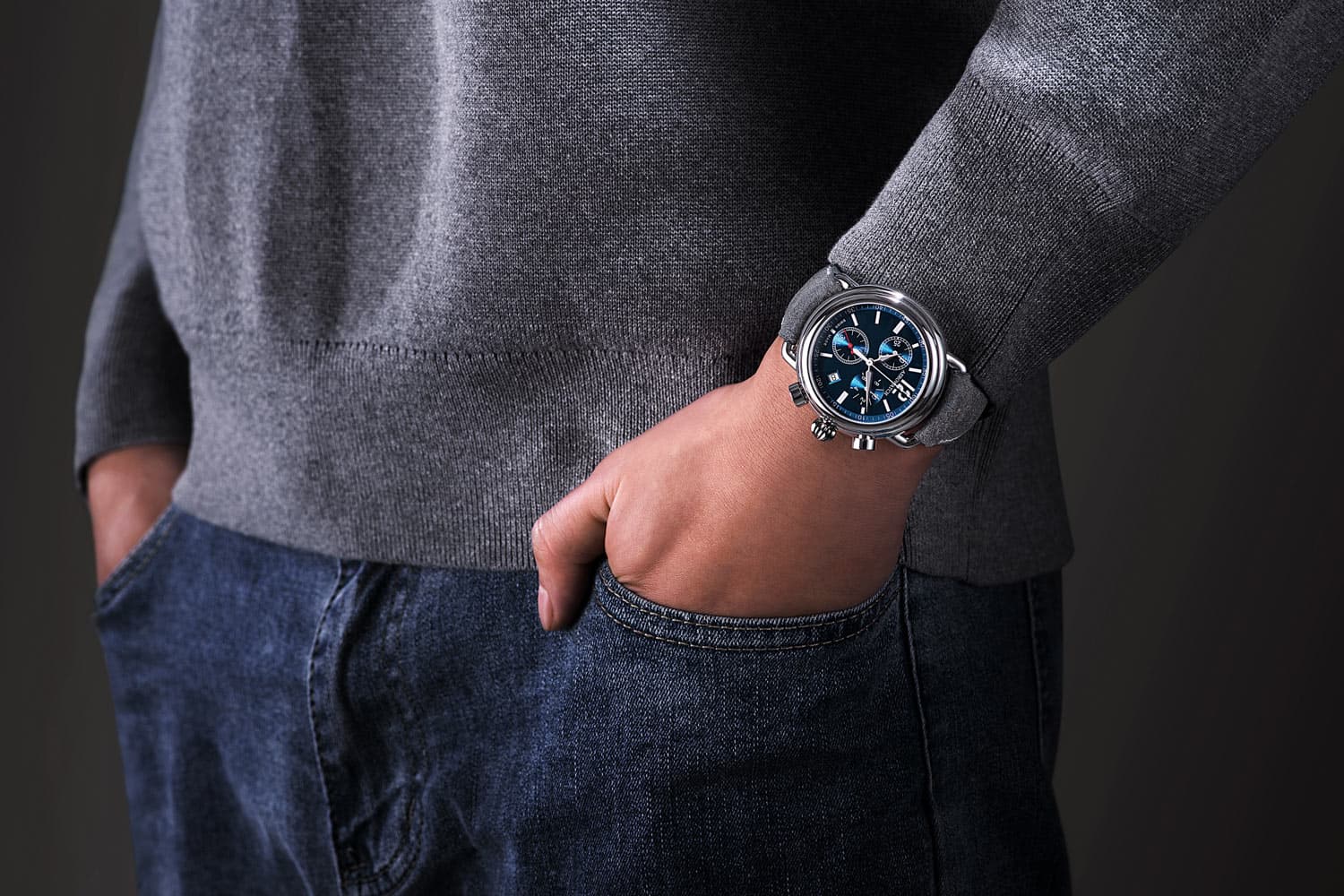 Hodinářský rukopis tohoto modelu zaujme svou precizností a spolehlivostí. Švýcarský mechanismus zaručuje vynikající přesnost indikace. Funkce chronografu z něj dělá dokonalého společníka pro dynamický životní styl. Modrý ciferník s klasickými indexy a čirými ručičkami, krytý pevným safírovým sklem, dodává hodinkám mimořádný šik vzhled. Tento model obsahuje také datumovku. Okno ve 4 hodiny vám řekne, jaký je den v měsíci. Vše je kryto safírovým sklem odolným proti poškrábání.