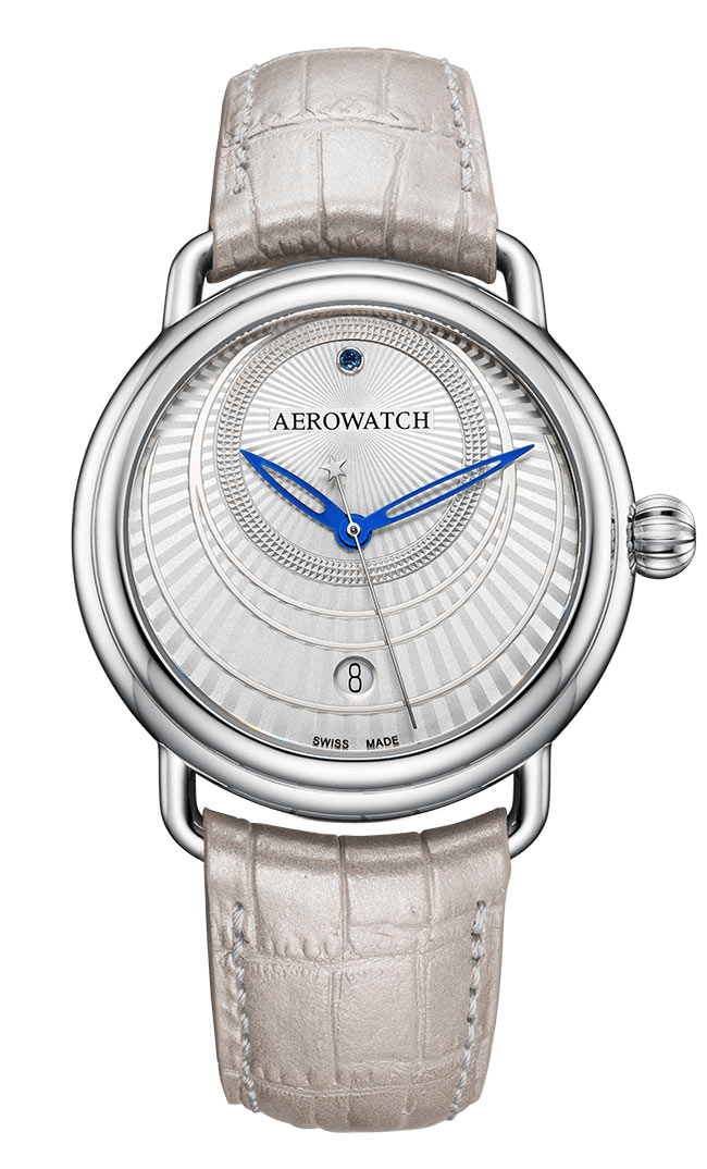 Pouzdro hodinek Aerowatch 1942 Diamond A-42900-AA24 je vyrobeno z nerezové oceli, což jim dodává odolnost a moderní vzhled. Kulaté pouzdro o průměru 40 mm obklopuje ciferník a korunka na boku dodává hodinkám charakter díky svému většímu, sférickému tvaru. Hodinky jsou vybaveny řemínkem z vysoce kvalitní kůže, který zdůrazňuje jejich eleganci. Řemínek v jemném, světlém odstínu šedé barvy dokonale ladí se stříbřitou tonací ciferníku, což hodinkám dodává jemnost a třídu. Kůže je výrazně strukturovaná, což obohacuje texturu řemínku a podtrhuje jeho luxusní charakter. Prezentované dámské hodinky Aerowatch jsou poháněny švýcarským strojkem napájeným vyměnitelnou baterií.