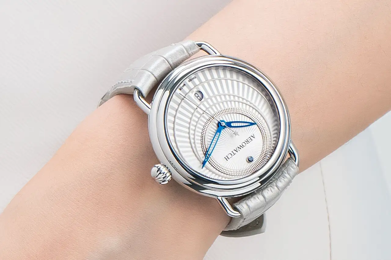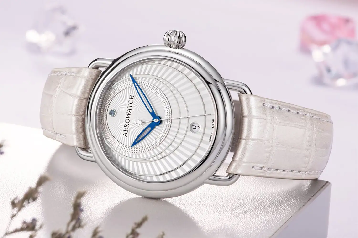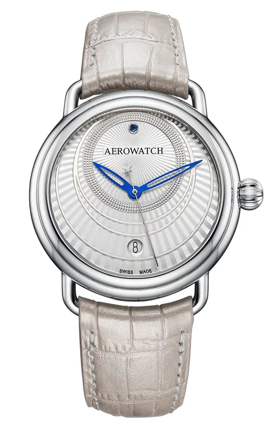 Model je osazen stylovým řemínkem z přírodní kůže v perleťově šedém odstínu s viditelným ražením a klasickou sponou. Perfektně se přizpůsobí ženskému zápěstí a poskytuje pohodlí i eleganci pro každý den. Díky nadčasovému tvaru, vysoce kvalitním komponentům a automatickému strojku bude Aerowatch 1942 Lady Automatic A 60900 AA24 nejen krásným doplňkem, ale i důkazem švýcarského řemesla a stylu té nejvyšší úrovně.