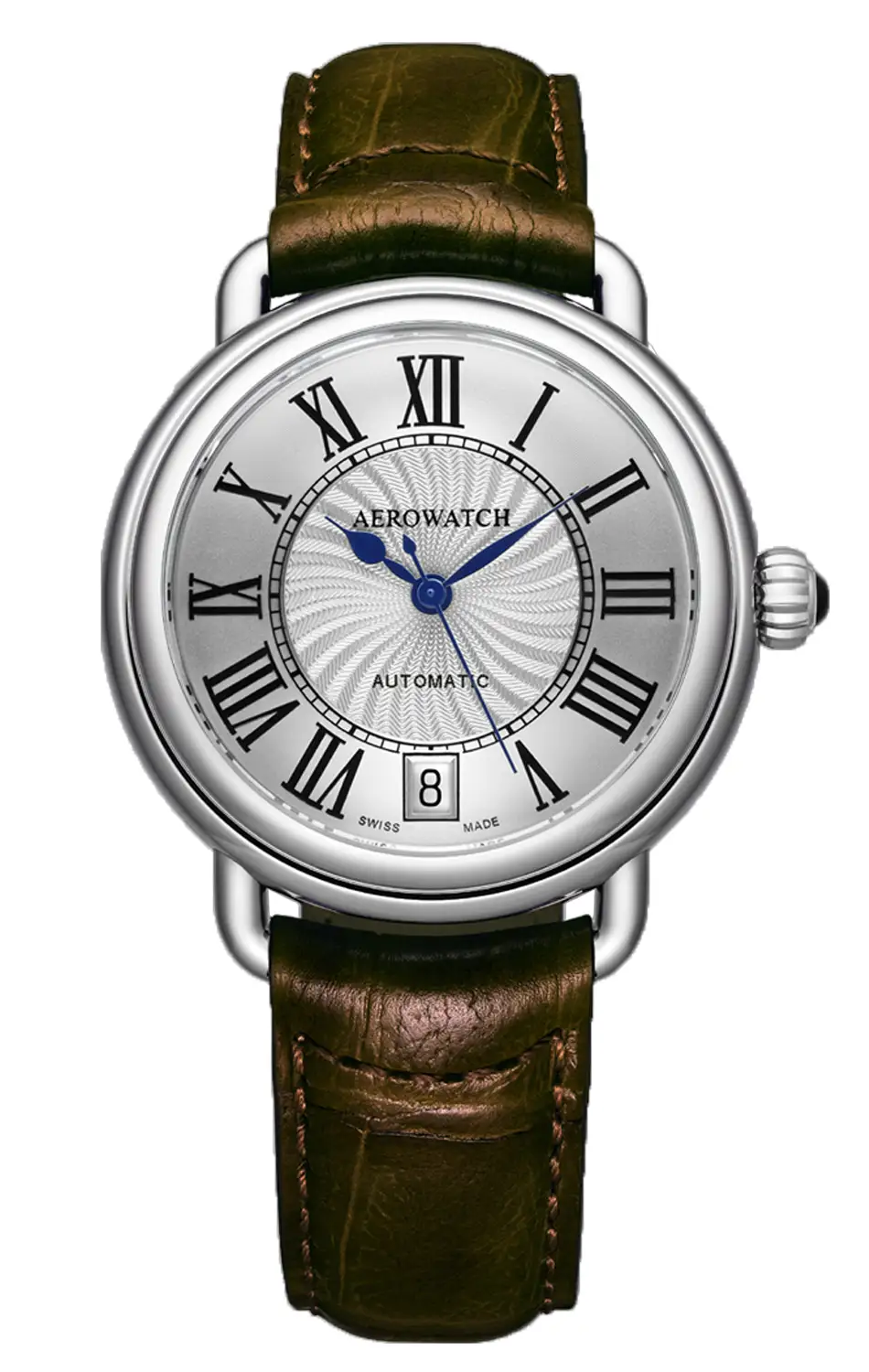 Aerowatch 1942 Lady Automatic A 60960 AA01 je klasické dámské mechanické hodinky, které okouzlí elegancí a jemným retro stylem. Tento model je zdařilým spojením švýcarské preciznosti s nadčasovým designem inspirovaným hodinkami z poloviny 20. století.