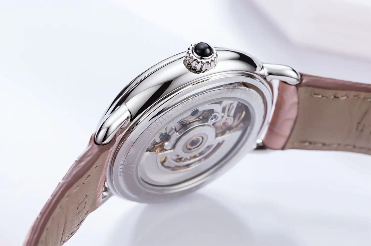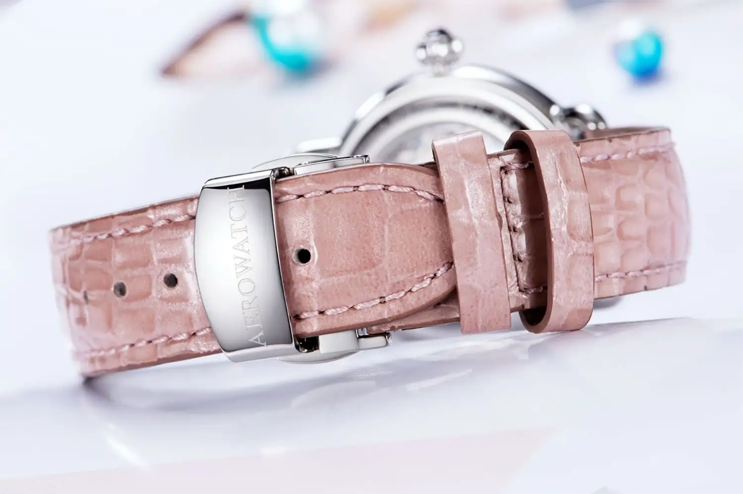 Hodinky doplňuje růžový řemínek z přírodní kůže, pružný a příjemný na dotek, zakončený pohodlným motýlkovým zapínáním. Model Aerowatch A 60960 AA18 DIA vyniká nejen estetikou, ale i praktičností – vodotěsnost na úrovni 50 metrů zajišťuje komfortní každodenní používání. V jeho srdci pracuje osvědčený švýcarský automatický strojek Sellita SW200-1, známý svou spolehlivostí a přesným chodem. Skvělá volba pro ženy, které od hodinek očekávají víc: emoce, výjimečný charakter a mistrovské provedení. Aerowatch již více než jedno století vytváří hodinky, které oslavují krásu a tradici švýcarského řemesla.