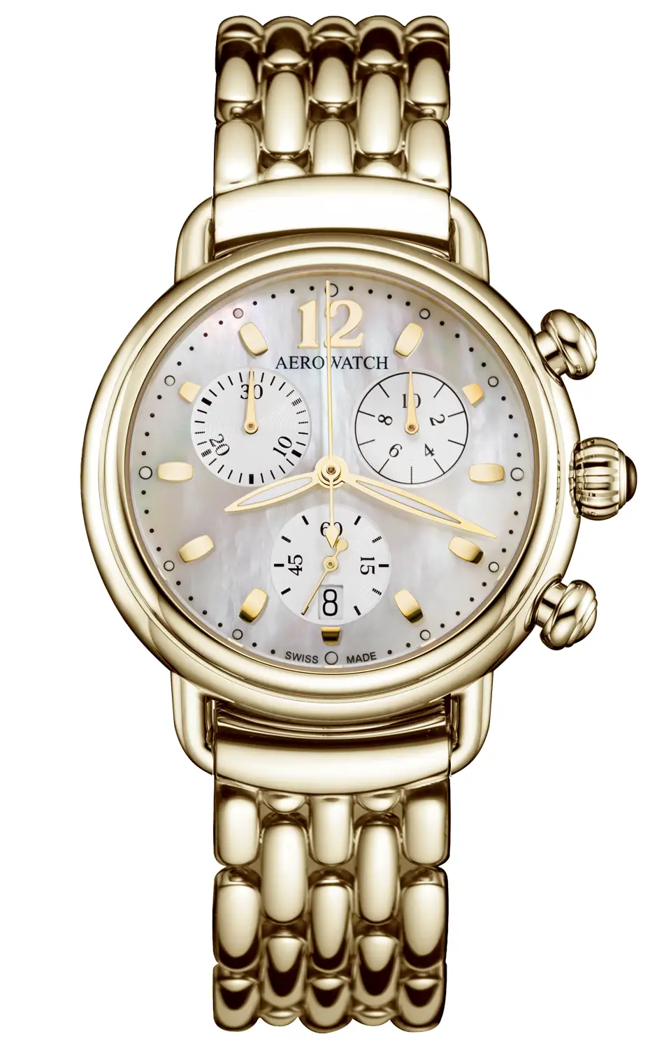Tento model je ideální volbou pro ženy, které upřednostňují zlatý lesk náramku před koženým řemínkem – se stejnou kvalitou, stylem a funkčností, jakou lze od švýcarské značky Aerowatch očekávat.