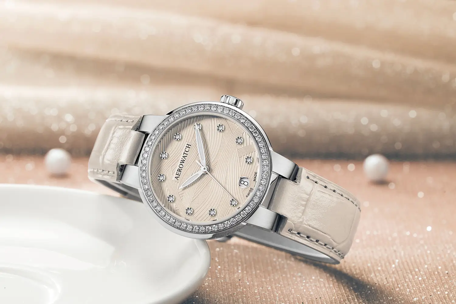 Aerowatch Harmonie A 42107 AA02 DIA – luxusní dámské hodinky s diamanty, navržené pro ženy, které si cení jemné elegance a švýcarské preciznosti.