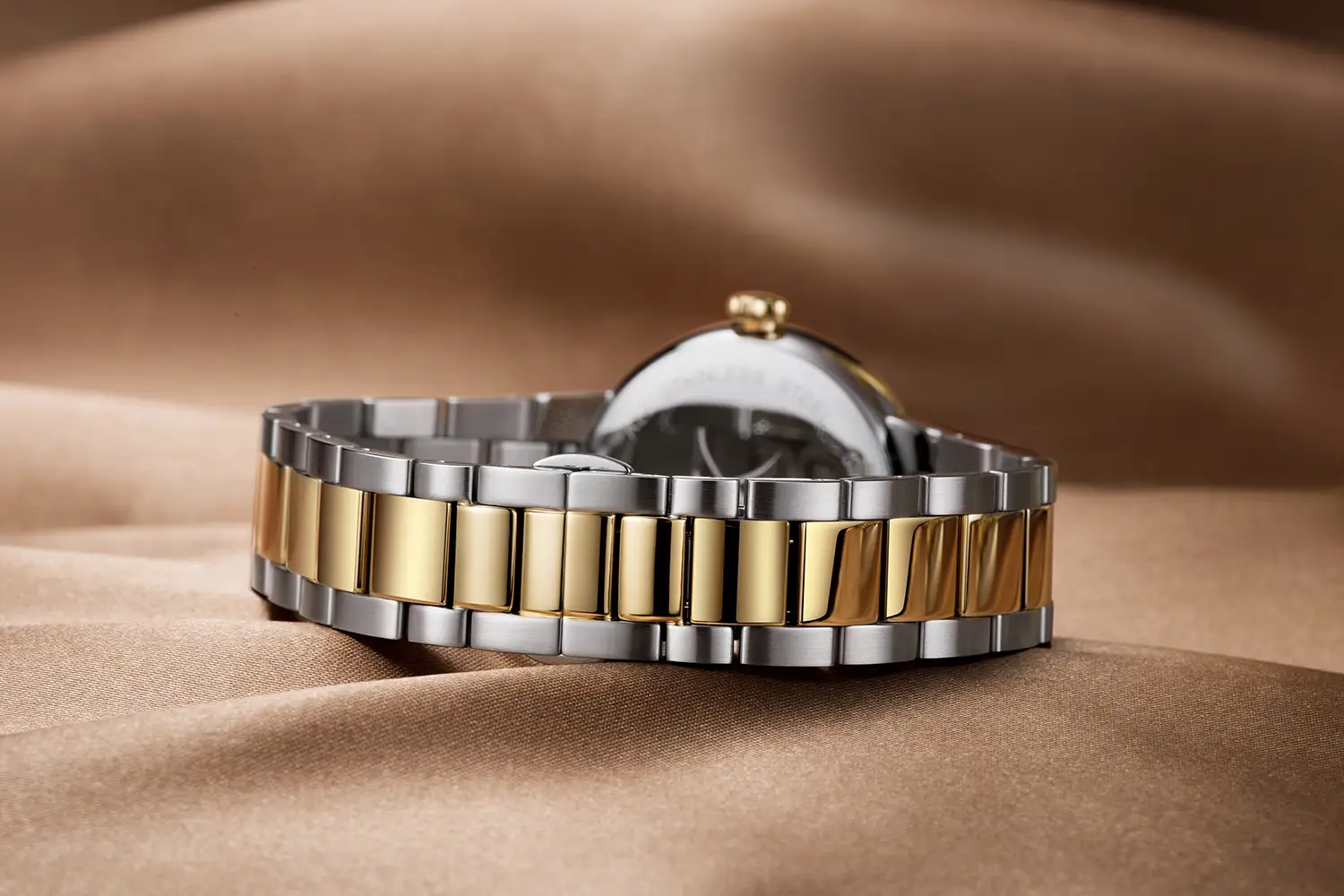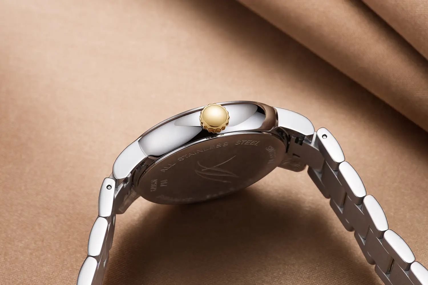Aerowatch 1942 Lady Automatic A 60960 AA01 je klasické dámské mechanické hodinky, které okouzlí elegancí a jemným retro stylem. Tento model je zdařilým spojením švýcarské preciznosti s nadčasovým designem inspirovaným hodinkami z poloviny 20. století.