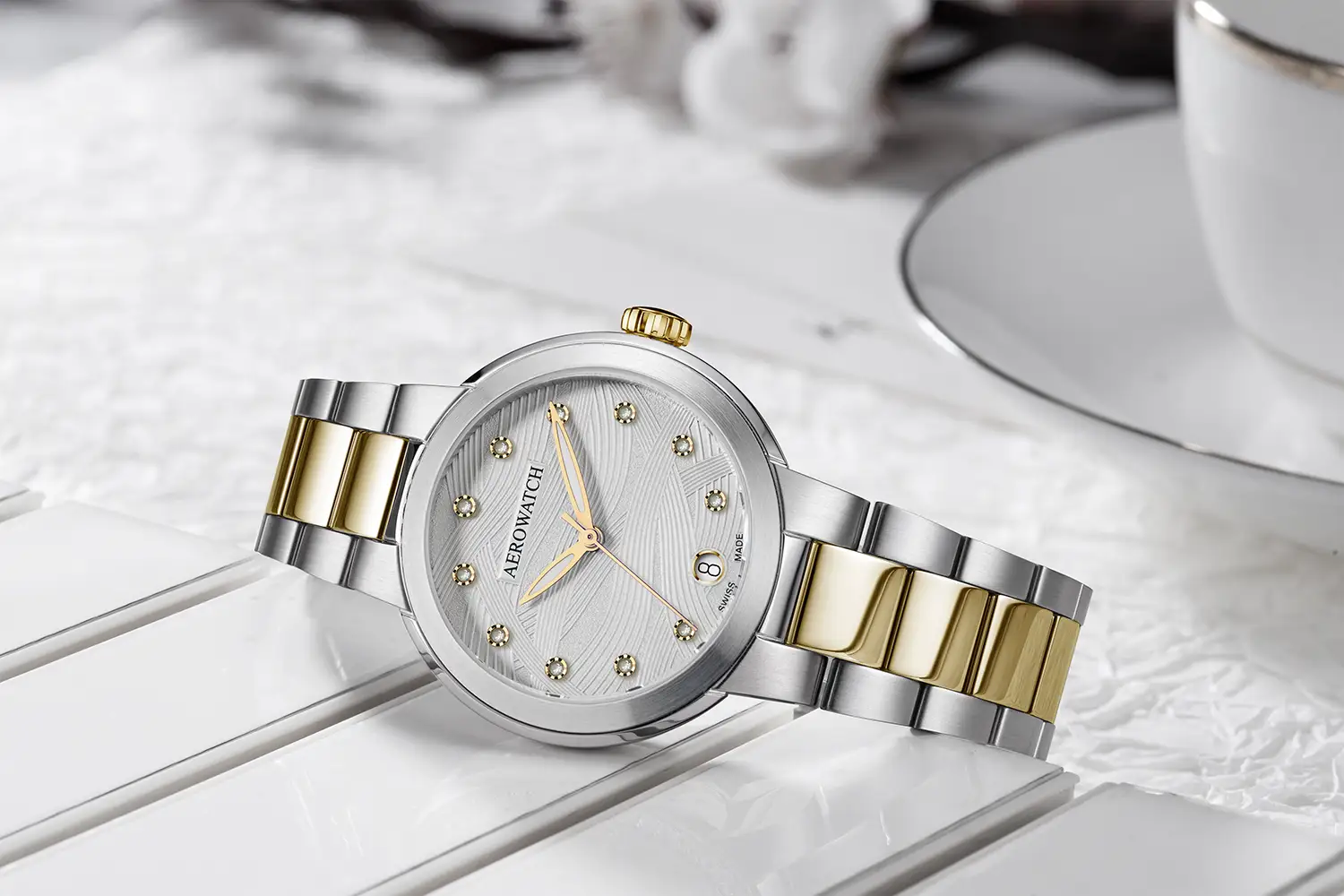 Zlaté hodinky Aerowatch Automatic A-60106-BI03-M na dvoubarevném náramku (bicolor) jsou určeny ženám, které nepotřebují potvrzení svého vkusu – jen hodinky, které je nezklamou.