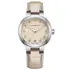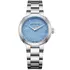 Ocelové pouzdro v barvě zlata PVD o průměru 35 mm je zpracováno ve dvou variantách: s leštěnou lunetou a saténově kartáčovanými nožkami, které opticky prodlužují linii zápěstí. Zepředu hodinky chrání vypouklé safírové sklo s antireflexní úpravou a skrze průhledné dýnko lze pozorovat chod švýcarského automatického strojku – živého srdce tohoto modelu, poháněného pohybem své nositelky. Ciferník typu „Snow Lines“ v chladném bílém odstínu s dokonale čitelným datem na šesté hodině je poctou jasnosti a geometrii.