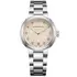 Pozlacené dámské hodinky Aerowatch Harmonie Automatic A 60106 JA03 jsou určeny ženám, které vědomě volí formu před módou a ticho před zbytečným rozruchom. Harmonická silueta tohoto modelu spočívá v detailech, které promlouvají šeptem – ale přesvědčivě. Není tu zlato, není tu křik – je tu čistota linií, hodinářská rovnováha a jemné světlo odrážející se od gilošovaného ciferníku a 11 pravých diamantů, které slouží jako indexy.