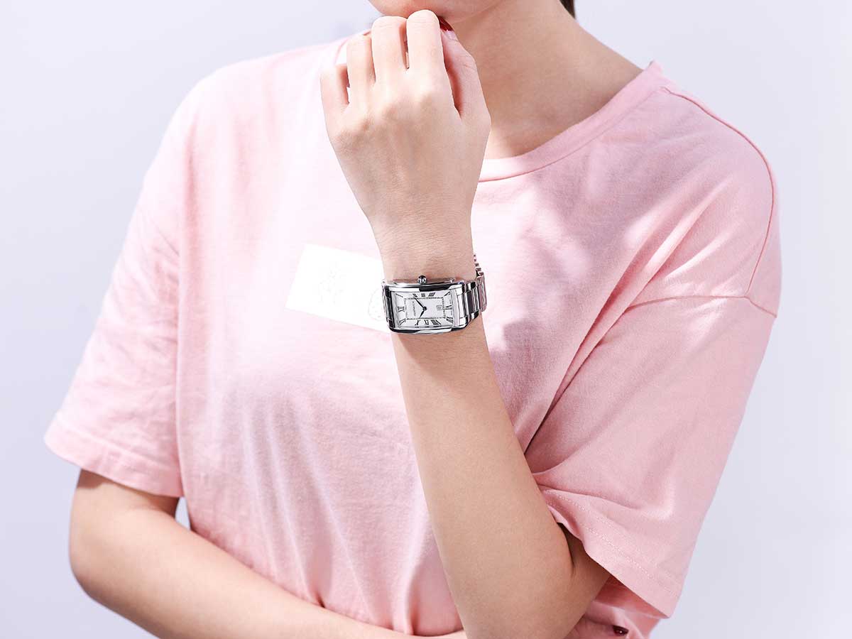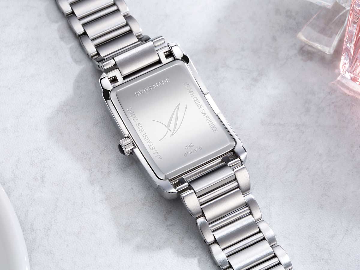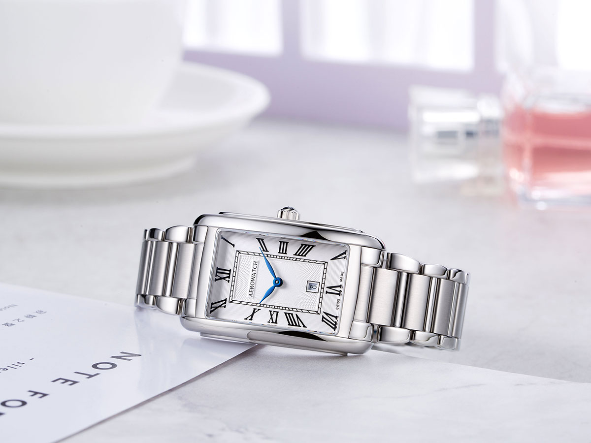 Dámské obdélníkové hodinky Aerowatch Intuition Classic A 49988 AA01 M. Neuvěřitelná elegance díky použití krásně zaoblených linií obdélníkového pouzdra o rozměrech 35,00 x 27,50 mm a čitelnému ciferníku s římskými číslicemi. Klasické ručičky v modré barvě dodávají čitelnost a jedinečný charakter. Správně vybraný náramek krásně ladí s celkem.