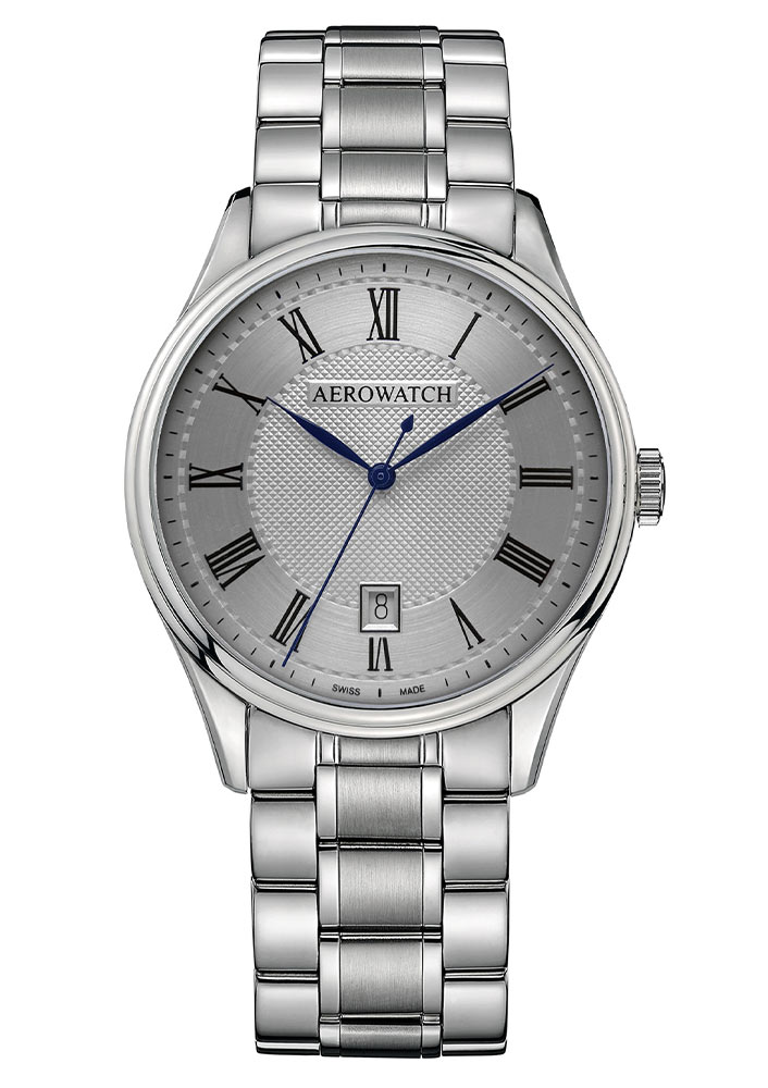 Ciferník Aerowatch s minimalistickým designem vyzařuje eleganci díky gilošovanému středu. Zobrazení data v šest hodin přidává funkcionalitu, která vám umožní sledovat aktuální den v měsíci. Přehledné římské indexy usnadňují přesné odečítání času a zároveň zdůrazňují klasický design hodinek. Celé to kryje safírové sklíčko odolné proti poškrábání, zajišťující dlouhodobou čirost ciferníku. Uvnitř pevného pouzdra je instalován švýcarský mechanismus, který zajišťuje mimořádnou přesnost při zobrazování aktuálního času.
