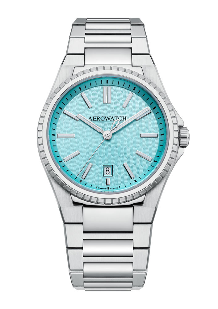 Kvalitní safírové sklíčko, které se těžko poškrábe, chrání krásný světle modrý ciferník - Sardinian Blue. Disk se vzorem jedlové větve má velké indexy a velmi dobře čitelné obdélníkové ručičky. Indexy, hodinová a minutová ručka jsou vyplněny luminiscenční hmotou Super-LumiNova®. Umožní vám odečítat čas za zhoršených světelných podmínek. Pozoruhodná je především vteřinovka, kterou zdobí detail po vzoru jedle. V 6 hodin je datumové okno, které ukazuje aktuální den v měsíci. Celý ciferník quartzových hodinek Aerowatch Milan je pozvánkou k duševní procházce nádhernou rozlehlostí pohoří Jura. Pod číselníkem je instalován přesný švýcarský quartz strojek s funkcí End Of Life. EOL vás bude informovat o nutnosti výměny baterie – sekundová ručička naskočí indexy každých pár sekund.