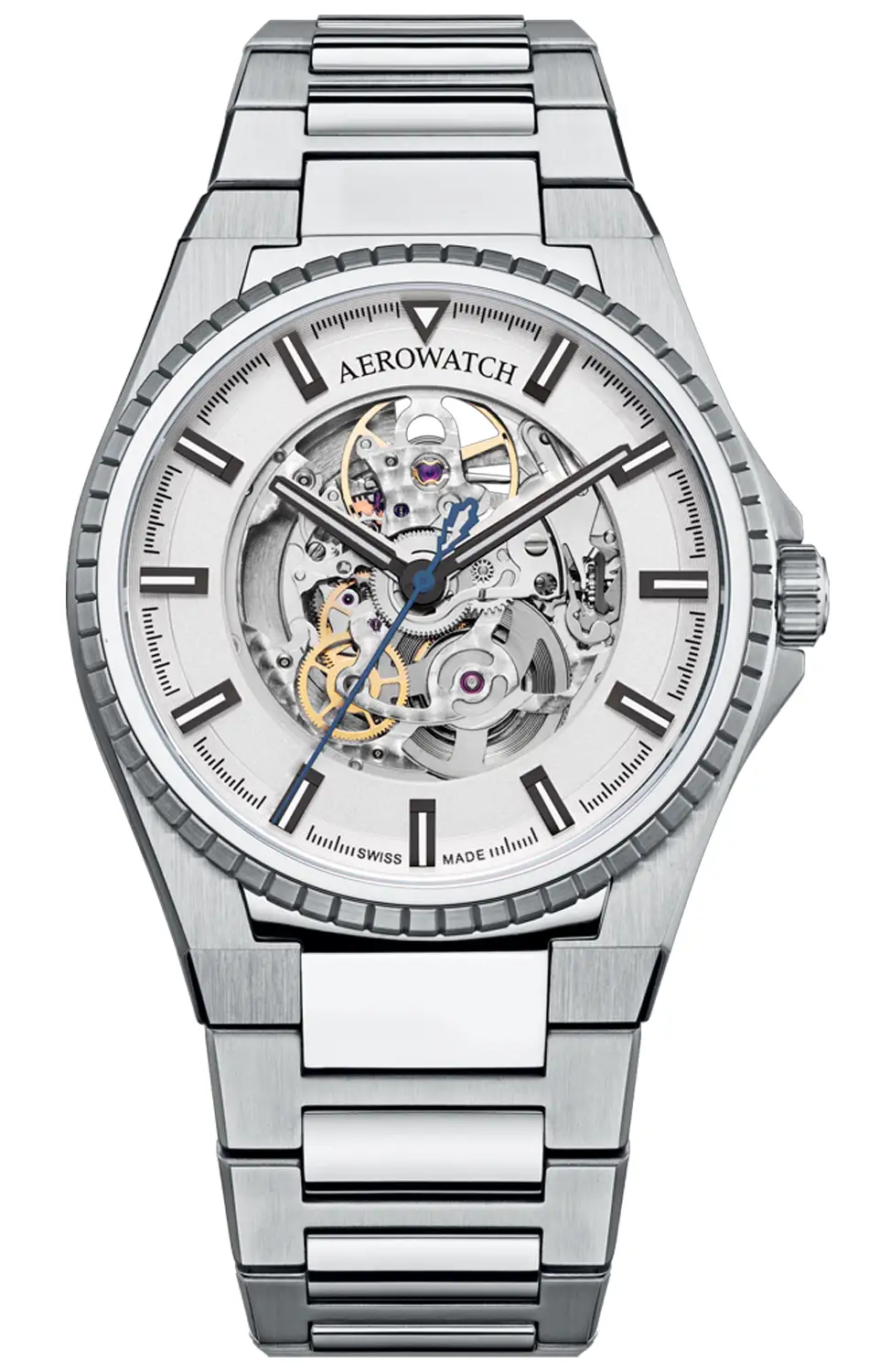 Aerowatch Milan Skeleton Automatic A 60998 AA07 M jsou pánské skeletonové hodinky ve verzi s celooceľovým náramkem, které spojují moderní estetiku s mechanickou transparentností. Jsou určeny pro muže, kteří si cení techniky, formy a výrazného designu – a kteří chtějí vidět, co se děje uvnitř.