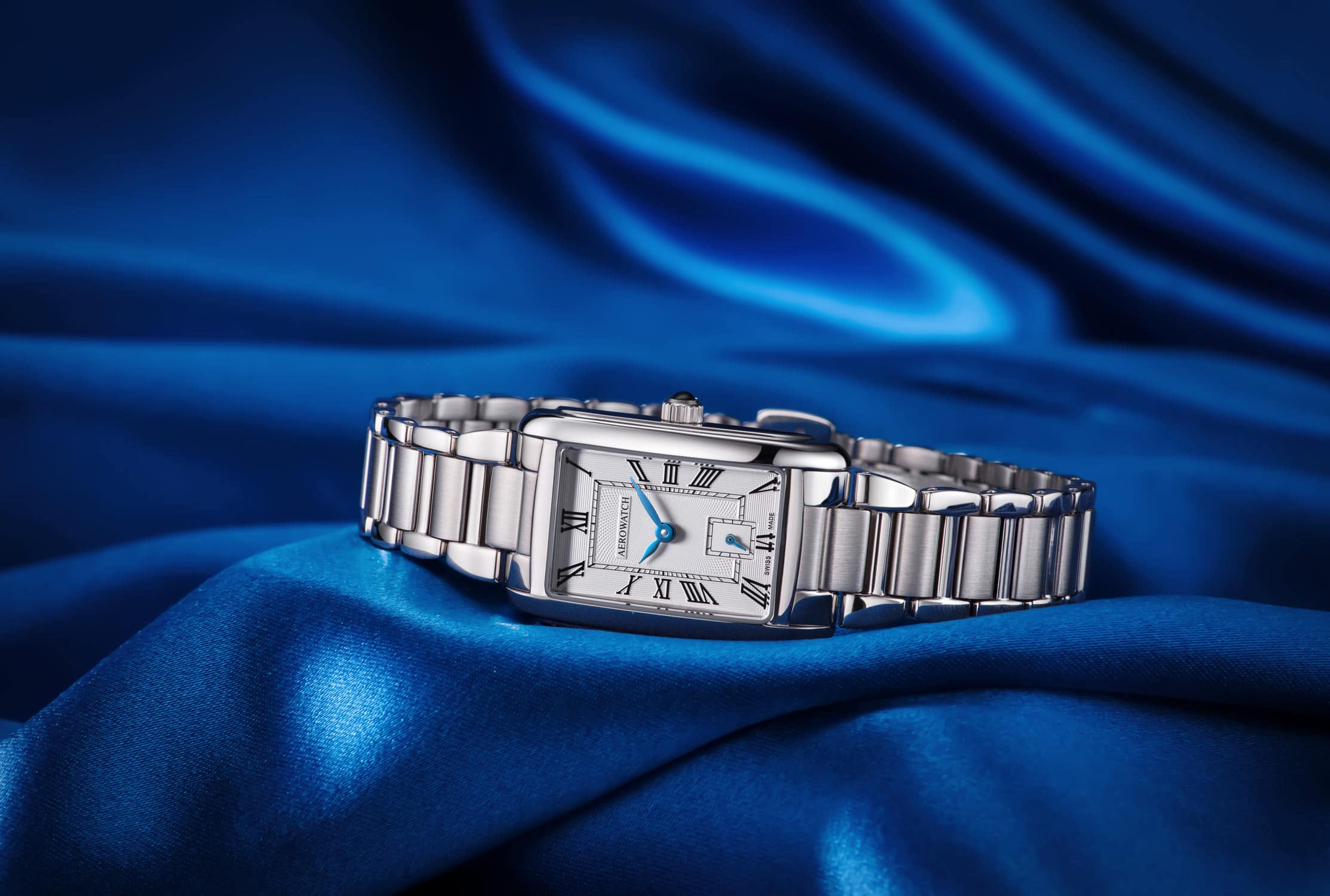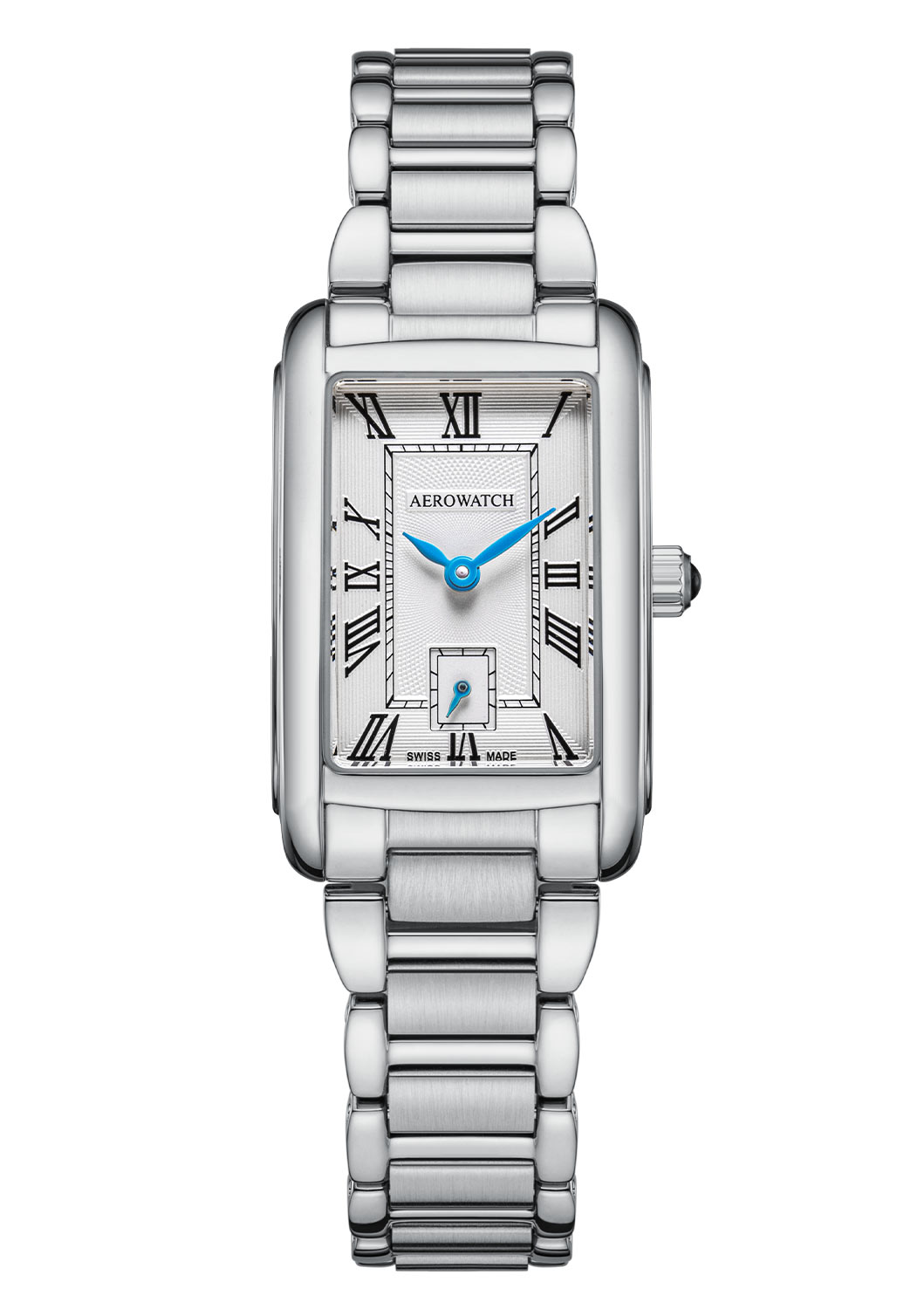 Dámské náramkové hodinky Aerowatch jsou dostupné ve velikosti 33 mm x 21 mm. Přední stranu pouzdra kryje safírové sklíčko, které se těžko poškrábe. Hodinky podepsané značkou Aerowatch jsou švýcarským dílem hodinářského umění, což zdůrazňují decentní nápisy „Swiss Made“ ve spodní části ciferníku. Celek se vyznačuje elegancí a minimalismem, ideální pro formální příležitosti i každodenní styling pro člověka, který ocení klasickou krásu s moderním akcentem.