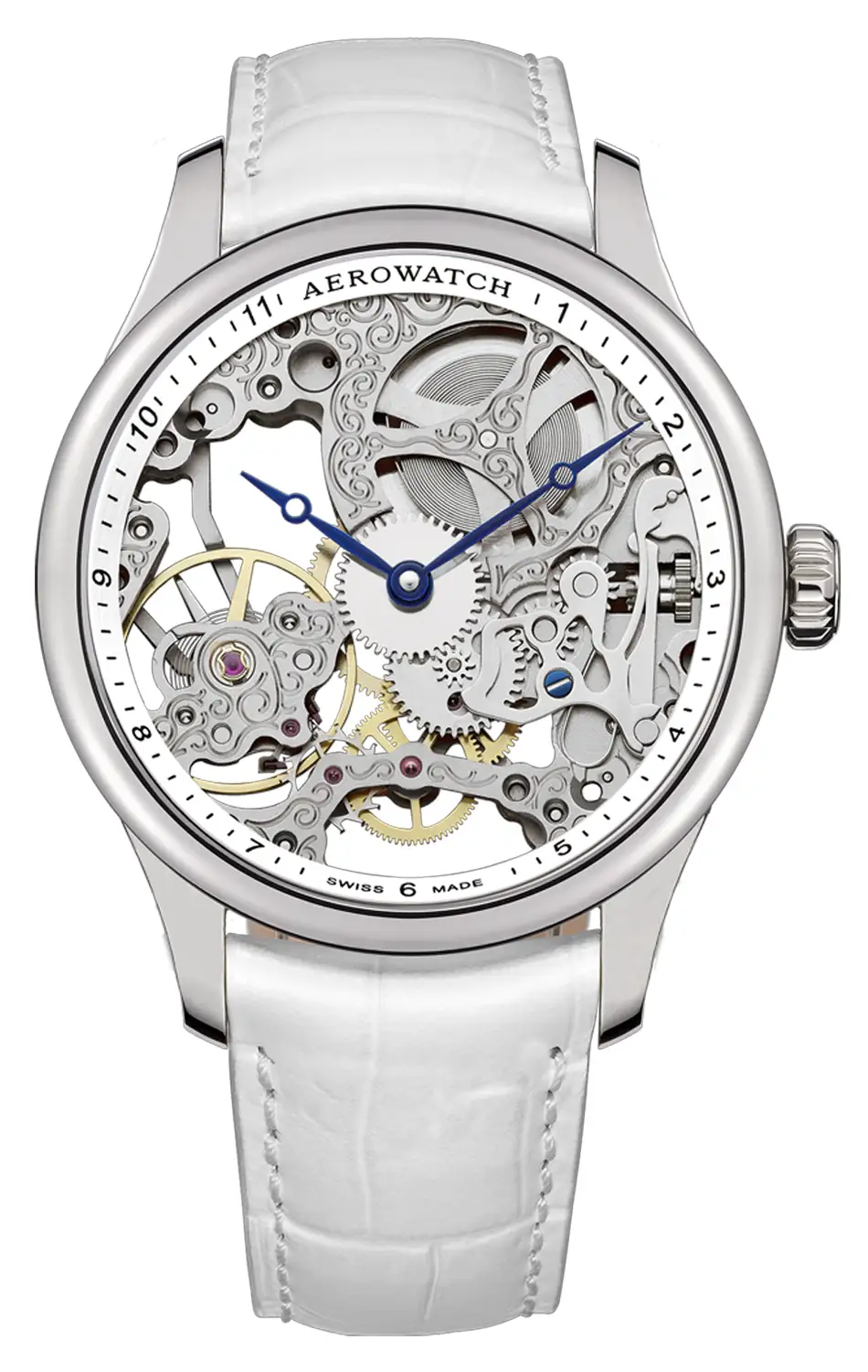 Aerowatch Renaissance Lady Skeleton A 57981 AA13 jsou hodinky, které nejen měří čas – ony ho odhalují. Ukazují rytmus, ve kterém bije hodinářské srdce, a činí tak s elegancí typickou pro Aerowatch: precizně a s dokonalým smyslem pro formu.