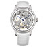 Hodinky doplňuje bílý řemínek z přírodní kůže s ražbou ve stylu aligátora. Je měkký, pohodlný a motýlková spona zajišťuje komfortní nošení a elegantní vzhled. Rezerva chodu činí přibližně 46 hodin – dost na to, aby Vás doprovázely celý víkend, i když je v pátek večer sundáte.