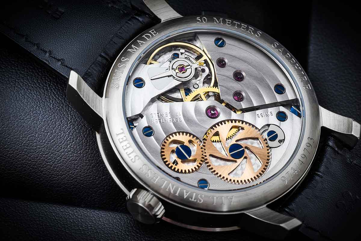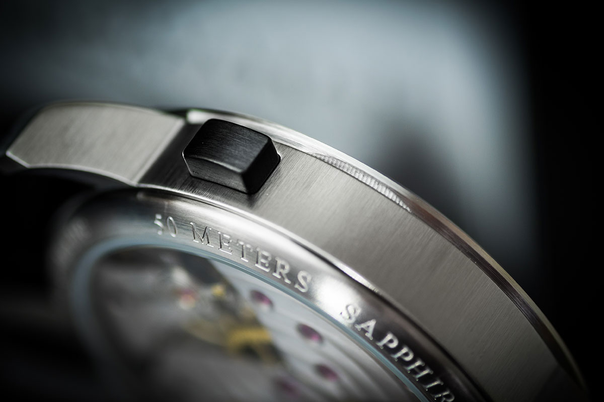 Ruční strojek je rovněž plně mechanický, ale vyžaduje pravidelné natahování pomocí korunky.