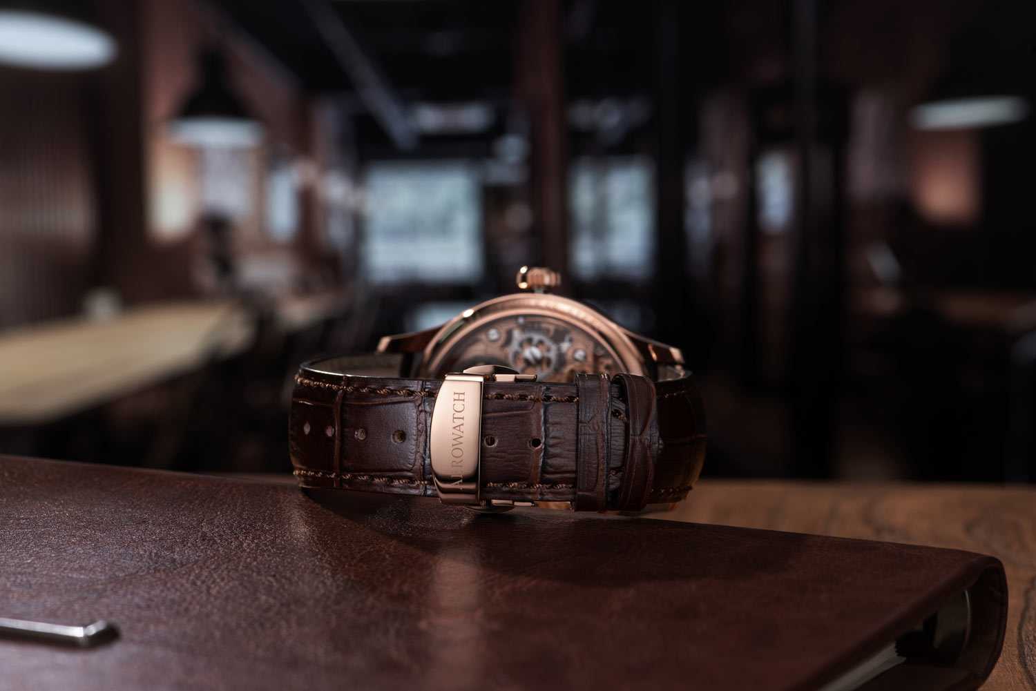 Leštěné pouzdro hodinek Aerowatch vyrobené z nejkvalitnějších materiálů působí elegantně a klasicky. Je pozlacená růžovým zlatem se zpevňujícím PVD povlakem. 43mm náramkové hodinky jsou spárovány s hladkým a na dotek příjemným hnědým koženým řemínkem. Má bezpečnou a pohodlnou motýlkovou sponu. Na zadní straně pouzdra je průhledný kryt, což je další prvek, který umožňuje obdivovat ručně natahovaný strojek ETA 6498 Swiss Made. Ruční natahovací mechanismus v hodinkách má řadu předností, díky kterým jej ocení milovníci hodinářství. Toto je volba pro lidi, kteří si cení historie a dědictví hodinek. Proces ručního natahování hodinek umožňuje uživateli přímou interakci s hodinkami.