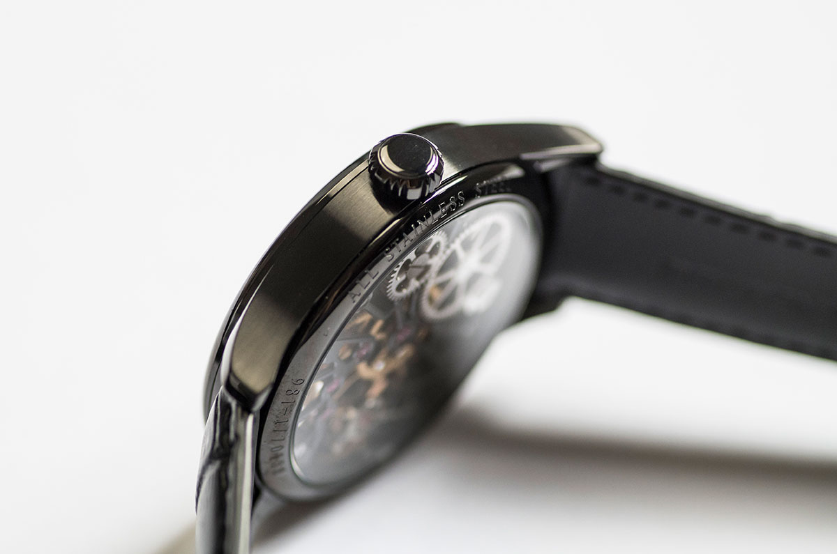 Ruční strojek je rovněž plně mechanický, ale vyžaduje pravidelné natahování pomocí korunky.