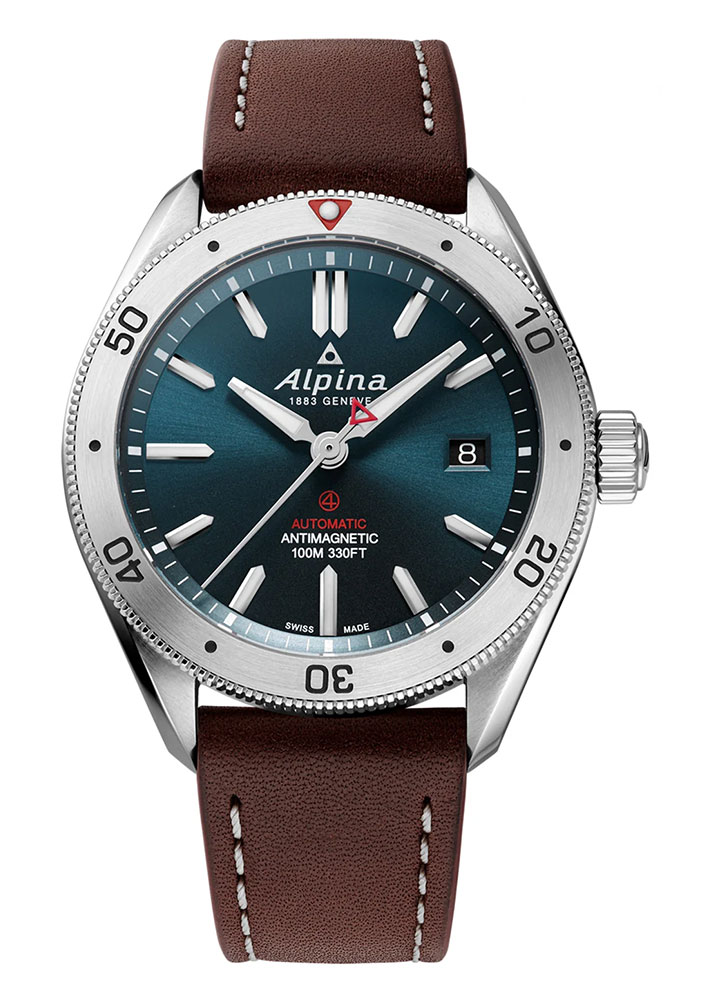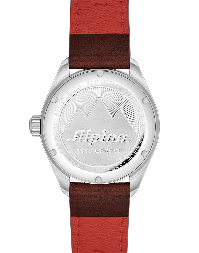 Krásný modrý ciferník zdobený vodorovnými linkami a broušenou úpravou. Ciferník tak získává třetí rozměr, přesahující rámečky rovného povrchu. Neobvyklé pozadí dynamicky zvýrazňuje červená špička vteřinové ručičky, která v podobě trojúhelníku symbolizuje alpské štíty, mezi nimiž tyto hodinky vznikly. Nakonec byly indexy a hodinová a minutová ručička vyplněny švýcarskou bílou luminiscenční hmotou, díky které jsou hodiny čitelné po setmění a v případě potřeby i pod vodou.