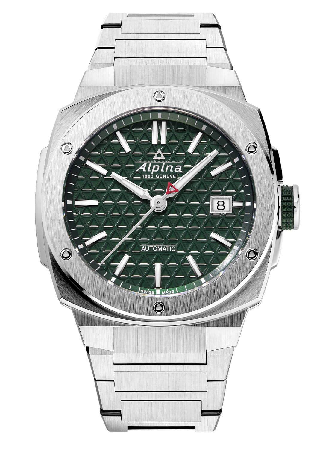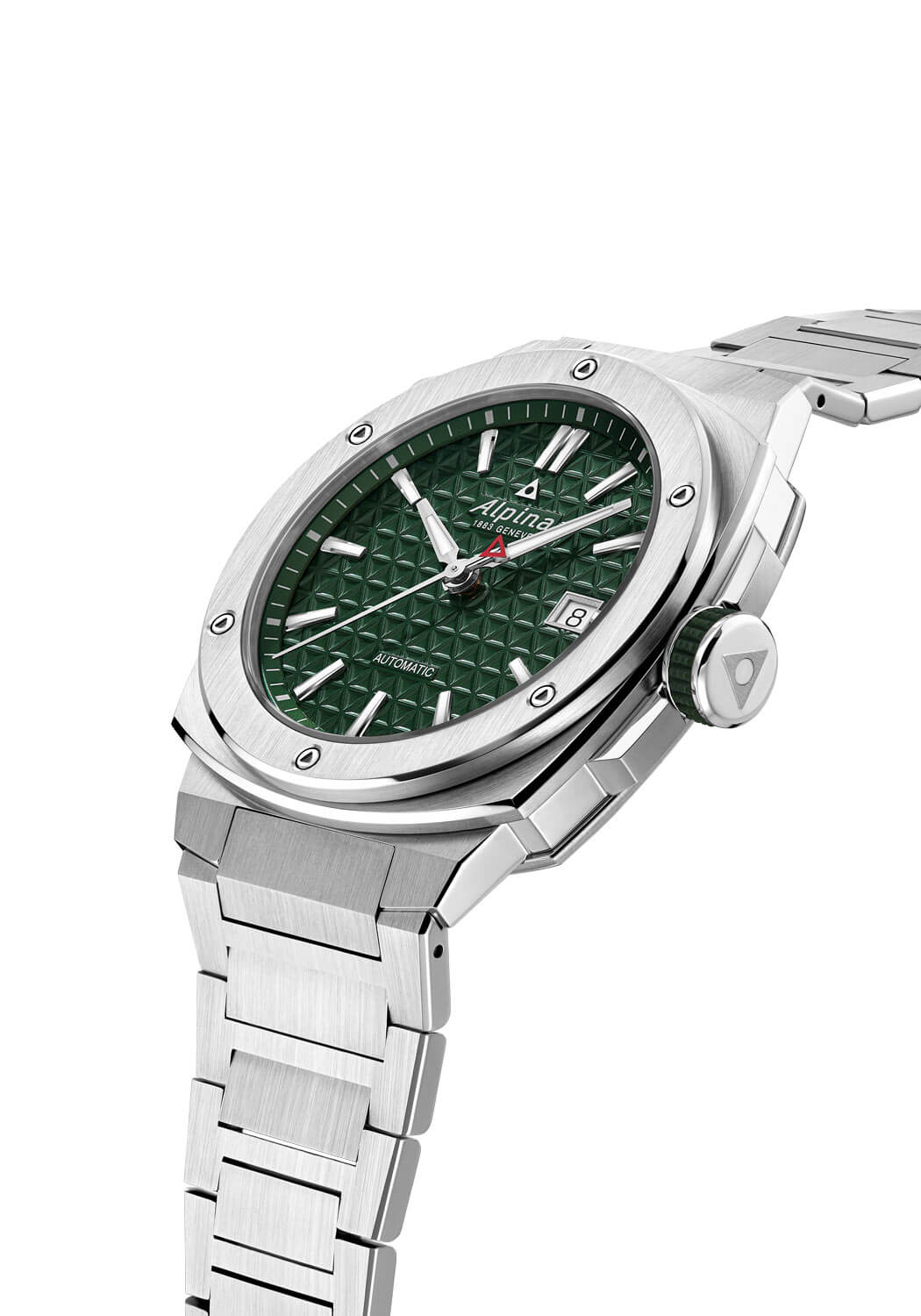 Tento model odráží filozofii značky Alpina, která již více než sto let čerpá inspiraci z přírody a klade důraz na spolehlivost v extrémních podmínkách. Každý detail hodinek byl pečlivě navržen tak, aby zajistil maximální odolnost a čitelnost. Pouzdro se vyznačuje šesti trojúhelníkovými šrouby na rámečku, které odkazují na logo značky, a integrovaným ocelovým náramkem, který zajišťuje nejen vysoký komfort nošení, ale také trvanlivost. Chráněno šroubovací korunkou s gumovým povrchem pro snadnou manipulaci za jakýchkoliv podmínek, konstrukce hodinek garantuje vodotěsnost až do 200 metrů (20 ATM), což je činí ideálním společníkem pro vodní sporty a aktivity na čerstvém vzduchu. Robustnost této konstrukce jde ruku v ruce s estetikou – lesklá textura číselníku a precizně profilované prvky odrážejí vysokou kvalitu zpracování.