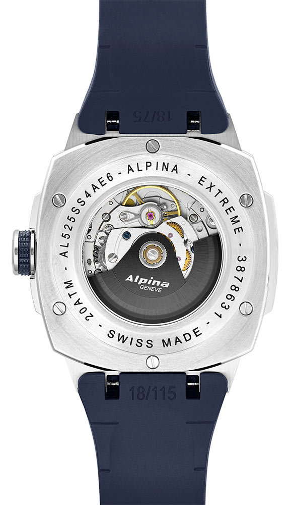 Tyto hodinky byly vyvinuty s ohledem na dobrodružství , které je jednou z hlavních vášní Alpiny, a znovu potvrzují svého Originního ducha. Díky svému nekompromisnímu vzhledu zajišťuje maximální čitelnost i schopnost přežít extrémní podmínky. Operativní hodinky Alpina mají neodmyslitelnou identitu díky integrovanému gumovému pásku, lunetě s trojúhelníkovými šrouby a pouzdru z nerezové oceli v tzv. tvar polštáře. Zařazením do řad Alpiner kolekce Extreme Automatic postupně potvrzuje své povolání objevovat přírodu. Dnes Alpina představuje novou verzi, která tuto výzvu řeší dvěma způsoby: zachovává si dobyvatelského ducha Extreme Automatic s asertivnějším stylem a novou velikostí 41 x 42,5 mm, díky čemuž je ideální pro každodenní použití. Tyto změny jsou výsledkem reakce na měnící se životní styl uživatelů. S kompaktními a nesporně odolnými automatickými hodinkami Alpina AL-525N4AE6 lze pracovat ve městě i do hor a provozovat vzrušující extrémní sporty.