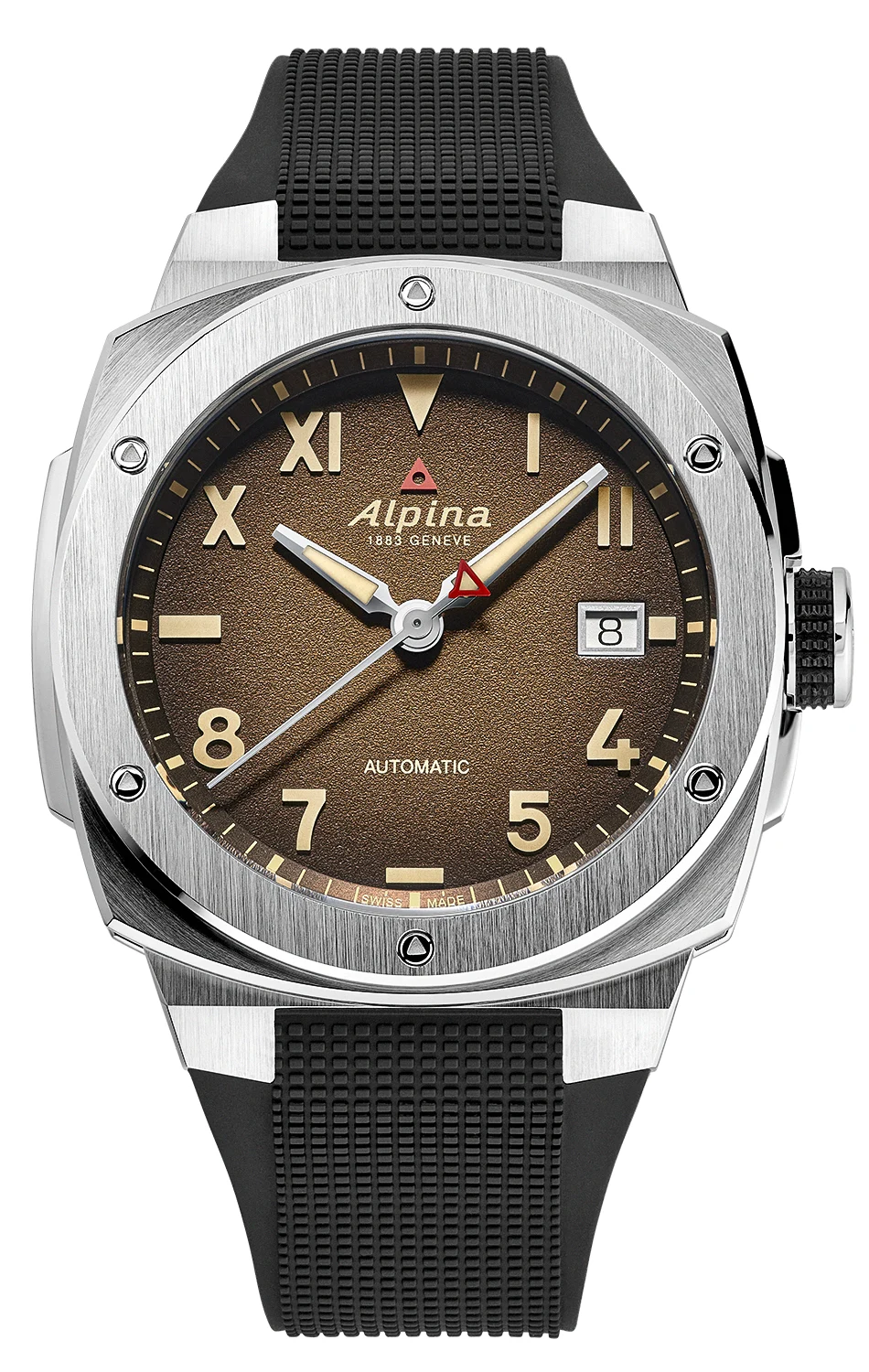 Alpina Alpiner Extreme Automatic California AL-525BRG3AE6 jsou sportovní hodinky s výrazným neo-vintage charakterem, stvořené pro ty, kdo mají rádi spojení klasické estetiky s moderní funkčností. Hnědý ciferník v tónu zapadajícího slunce dodává celku teplo a hloubku a polštářové pouzdro podtrhuje outdoorové DNA kolekce.