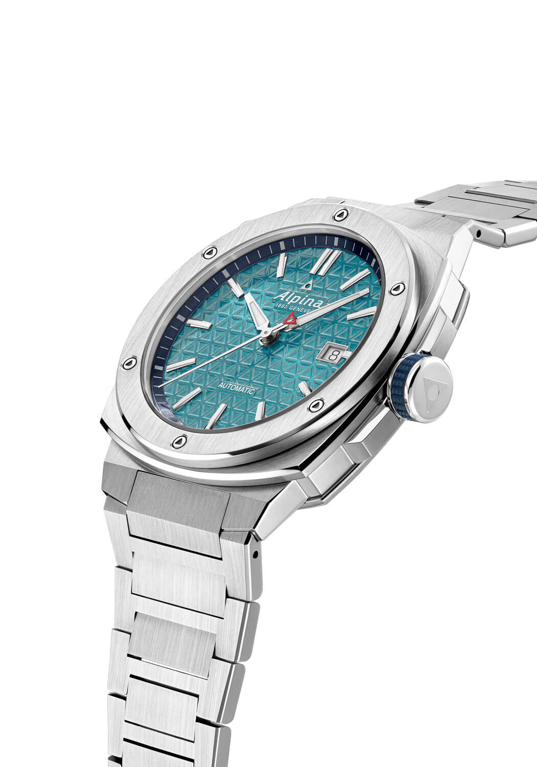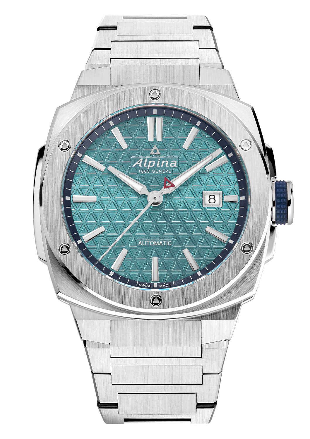 Tento model odráží filozofii Alpiny, která již více než století čerpá inspiraci z přírody a klade důraz na spolehlivost v extrémních podmínkách. Každý detail hodinek byl pečlivě navržen tak, aby zajistil maximální odolnost a čitelnost. Pouzdro je charakteristické šesti trojúhelníkovými šrouby na lunetě, které odkazují na logo značky, a také integrovaným ocelovým náramkem, který zaručuje jak vysoký komfort při nošení, tak odolnost. Konstrukce hodinek, chráněná šroubovací korunkou s gumovým povrchem pro snadnou manipulaci za každých podmínek, poskytuje vodotěsnost do 200 metrů (20 ATM), což z nich činí ideálního společníka pro vodní sporty a venkovní aktivity. Robustnost této konstrukce je spojena s estetikou – lesklá textura ciferníku a precizně tvarované prvky svědčí o vysoké kvalitě zpracování.
