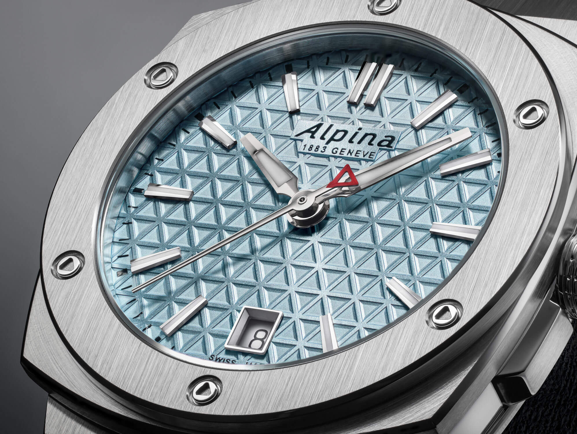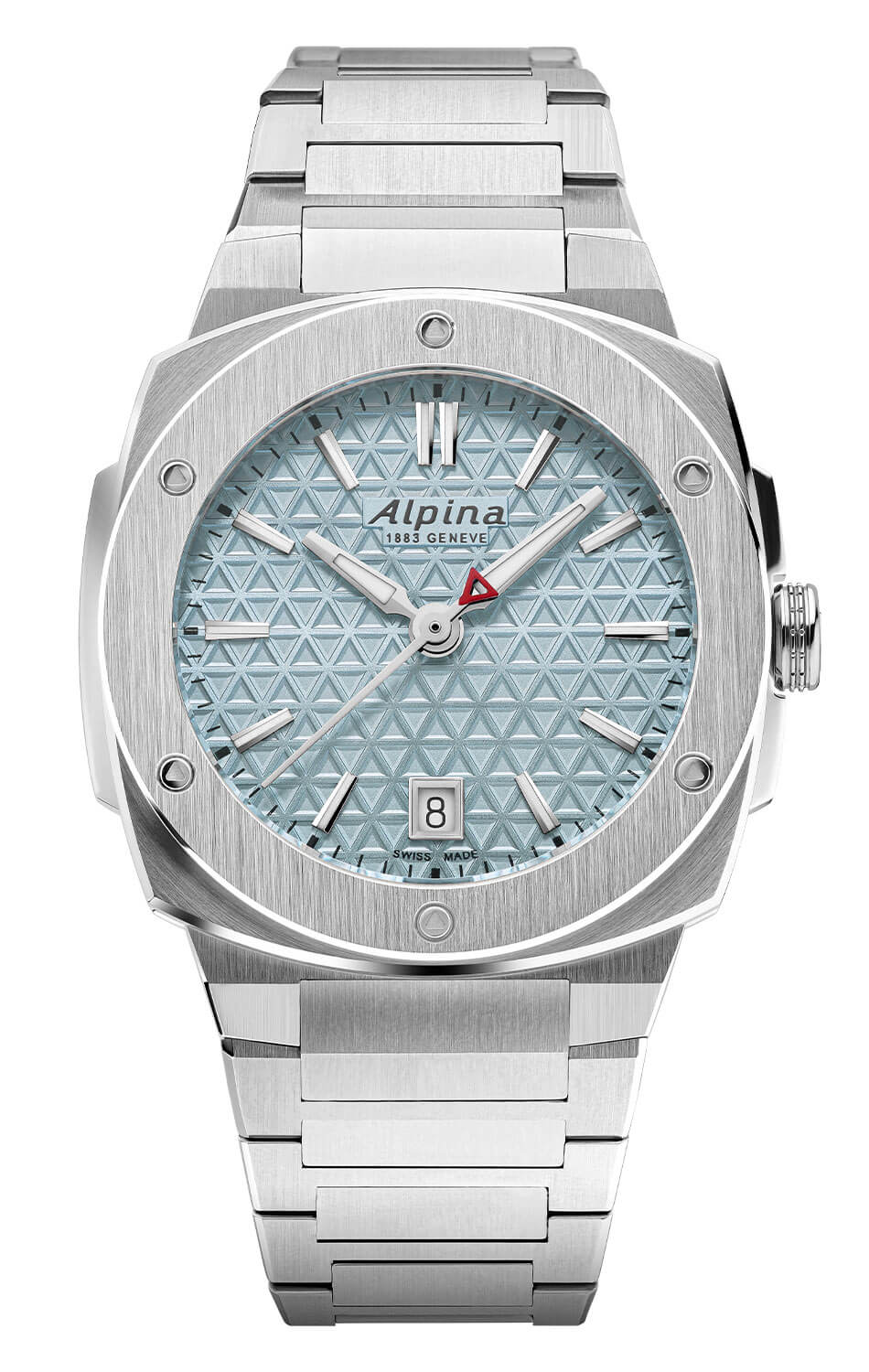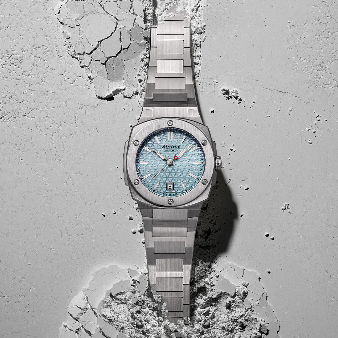 Hodinky Alpina jsou nabízeny v ultrakompaktním rozměru 34 × 35,20 mm a vybaveny odolným pouzdrem typu cushion – s geometrickým tvarem a precizně opracovanými plochami. Stříbrné pouzdro je doplněno výraznou lunetou. Integrovaný ocelový náramek je zakončen pohodlnou motýlkovou sponou se dvěma bezpečnostními tlačítky. Model má vodotěsnost do 100 metrů a je navržen tak, aby obstál nejen v městském prostředí, ale i při dynamičtějším životním stylu. Uvnitř se nachází švýcarský strojek AL-220 – přesný a osvědčený mechanismus, který svou majitelku nezklame.