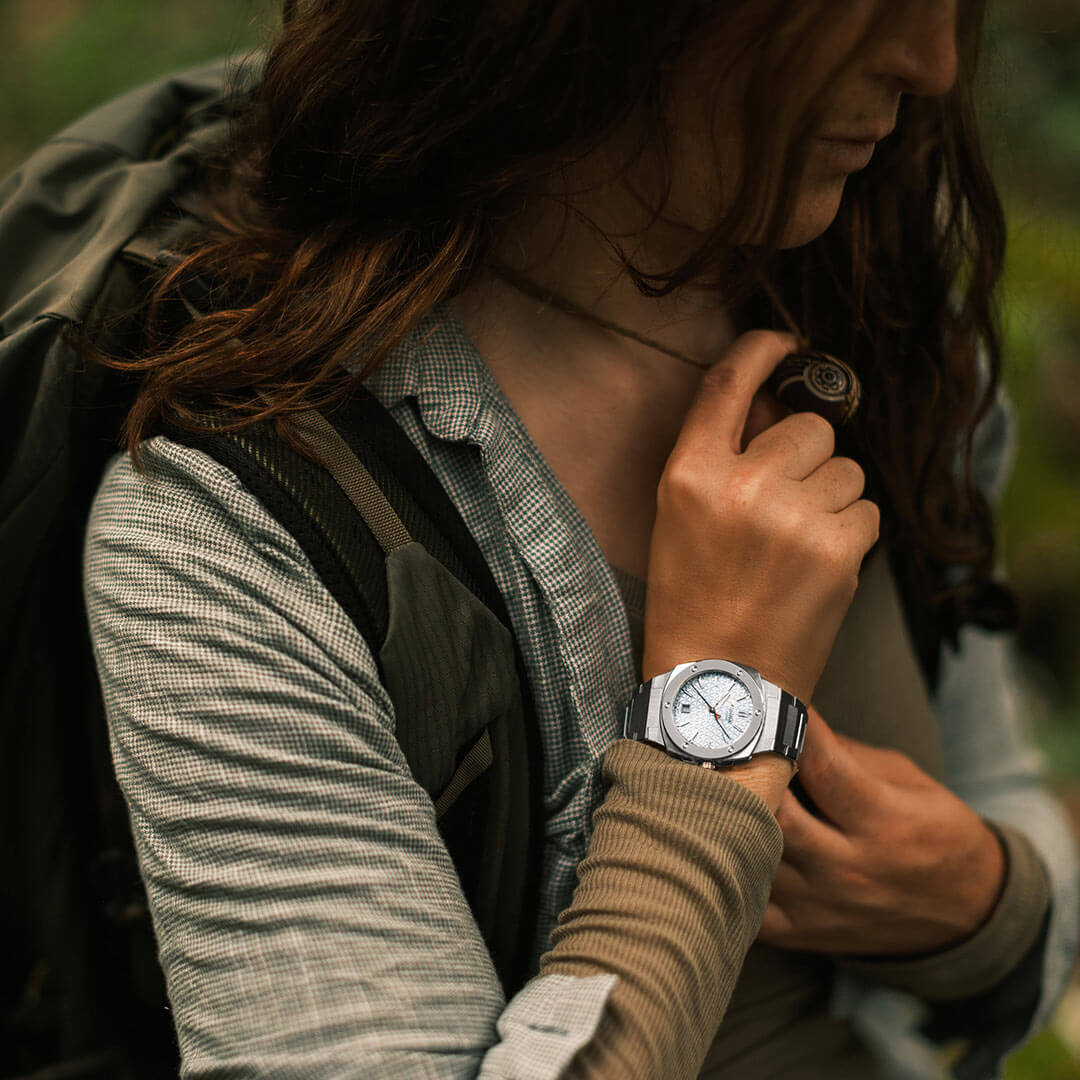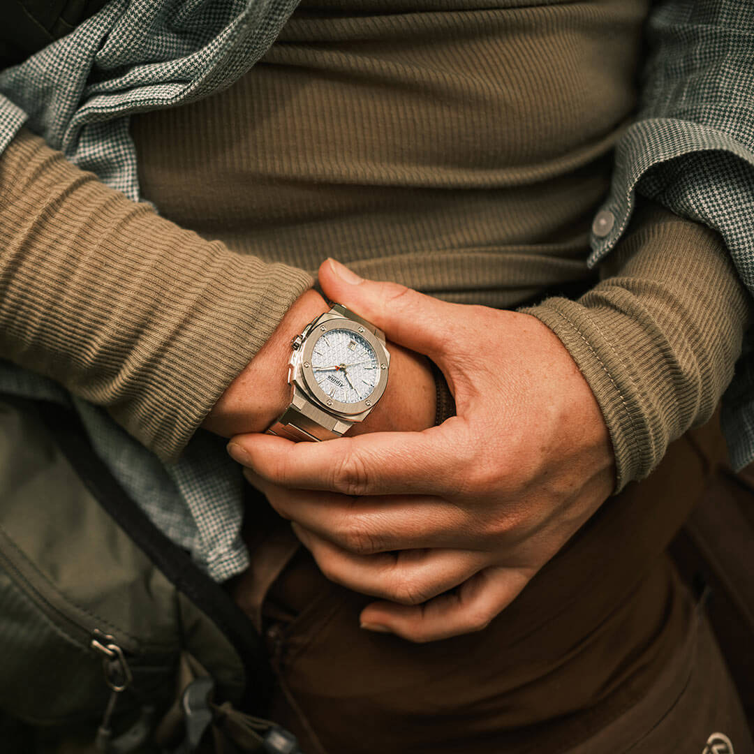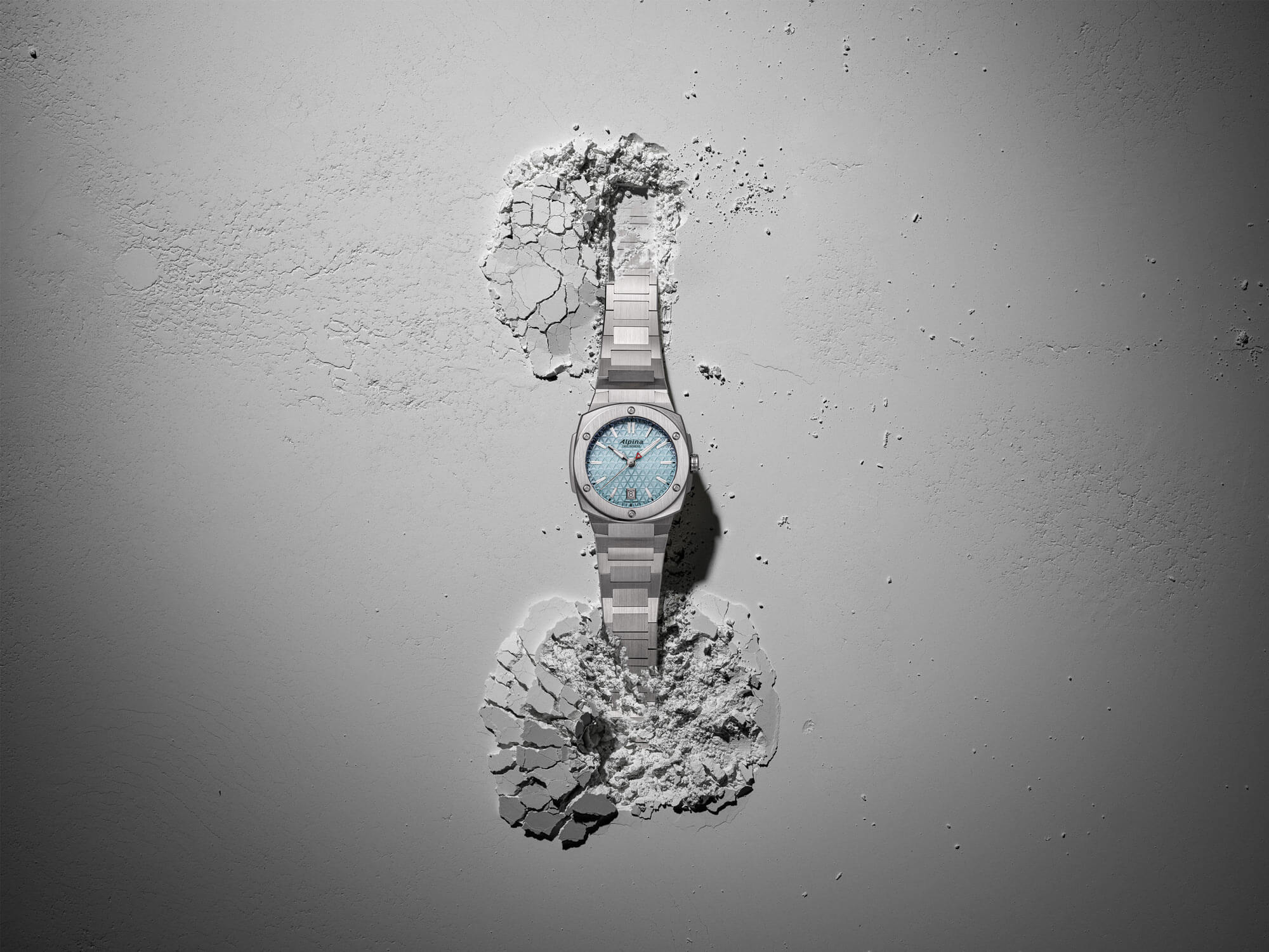 Hodinky Alpina jsou nabízeny v ultrakompaktním rozměru 34 × 35,20 mm a vybaveny odolným pouzdrem typu cushion – s geometrickým tvarem a precizně opracovanými plochami. Stříbrné pouzdro je doplněno výraznou lunetou. Integrovaný ocelový náramek je zakončen pohodlnou motýlkovou sponou se dvěma bezpečnostními tlačítky. Model má vodotěsnost do 100 metrů a je navržen tak, aby obstál nejen v městském prostředí, ale i při dynamičtějším životním stylu. Uvnitř se nachází švýcarský strojek AL-220 – přesný a osvědčený mechanismus, který svou majitelku nezklame.