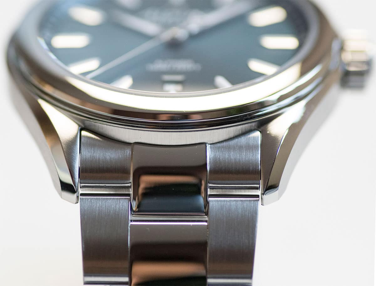 Materiál, ze kterého je vyrobeno pouzdro hodinek – např. ušlechtilá ocel, titan, keramika, zlato nebo plast.